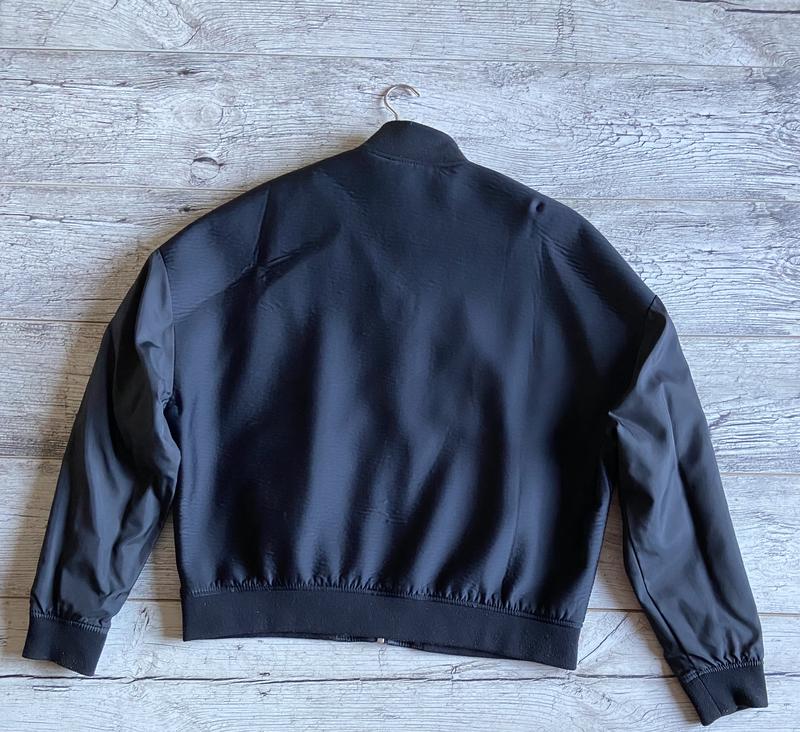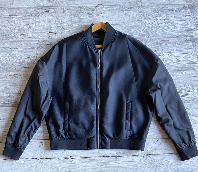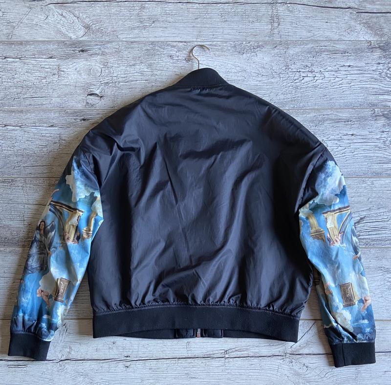 Дуже цікавий і красивий обмір від Bershka з принтами, стан чудовий, сидить оверсайзом, плечі йдуть нижче, ніж у звичайних бомберів, можна носити з двох боків)