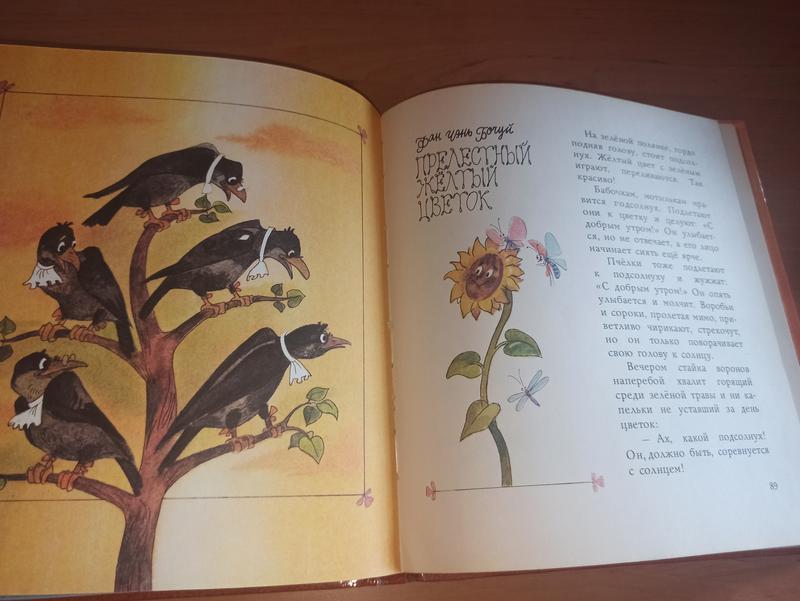 Превосходные цветные иллюстрации. Содержание. Волшебная травка Зверобой. Сказки авторов Малыша: - Г. Цыферов. Жил на свете слоненок, - Э. Мошковская. Самый счастливый остров, - Э. Рауд. Про цыпленка, которому хотелось кудахтать, Белка и барсук, - Д. Хармс. Про собаку Бубуку, Храбрый еж, - Т. Макарова. Маленький ослик мечтает кого-нибудь спасти, - С. Козлов. Солнечный заяц и медвежонок, Волшебная травка Зверобой, - В. Сутеев. Палочка-выручалочка. Зайчик под персиковым деревом. Сказки авторов КНР: - Бо Лан. Зайчик под персиковым деревом, - Е.Цзюнь. Длинноносый и коротконосый, - Фан Ицюнь. Возвращение морковки, - Сунь Юцзюнь. Как светлячок друга искал, - Фан Чэнь Бочуй. Прелестный желтый цветок, - Фан Хойчжень, Шэн Луда. Головастики ищут маму, - Се Хуа. Головастики на скале, - Жэнь Далинь. Двухвостик учится.Совместное издание издательства «Малыш» и издательства детской и юношеской литературы (Шанхай, КНР). С о д е р ж а н и е: 1. Геннадий Цыферов - «Жил на свете слоненок», 2. Эмма Мошковская - «Самый счастливый остров», 3. Эно Рауд - «Про цыпленка, которому хотелось кудахтать», «Белка и барсук», 4. Даниил Хармс - «Про собаку Бубуку», «Храбрый еж», 5. Татьяна Макарова - «Маленький ослик мечтает кого-нибудь спасти», 6. Сергей Козлов - «Солнечный заяц и медвежонок», «Волшебная травка Зверобой», 6. Владимир Сутеев - «Палочка-выручалочка», 7. Бо Лан - «Зайчик под персиковым деревом», 8. Е.Цзюнь - «Длинноносый и коротконосый», 9. Фан Ицюнь - «Возвращение морковки», 10. Сунь Юцзюнь - «Как светлячок друга искал», 11. Фан Чэнь Бочуй - «Прелестный желтый цветок», 12. Фан Хойчжень, Шэн Луда - «Головастики ищут маму», 13. Се Хуа - «Головастики на скале», 14. Жэнь Далинь - «Двухвостик учится». Разноцветные страницы, разноформатные рисунки в стиле лучшей советской мультипликации.