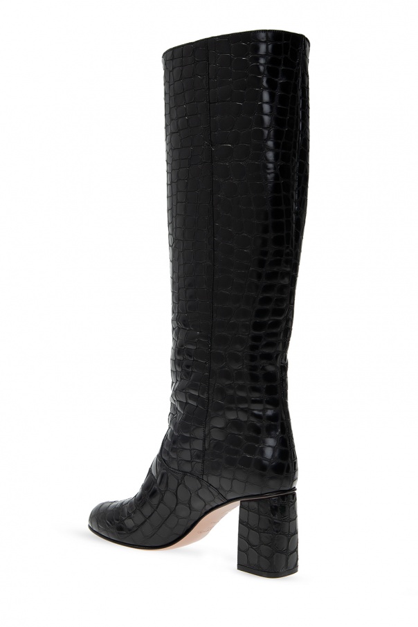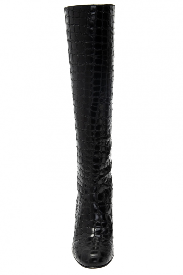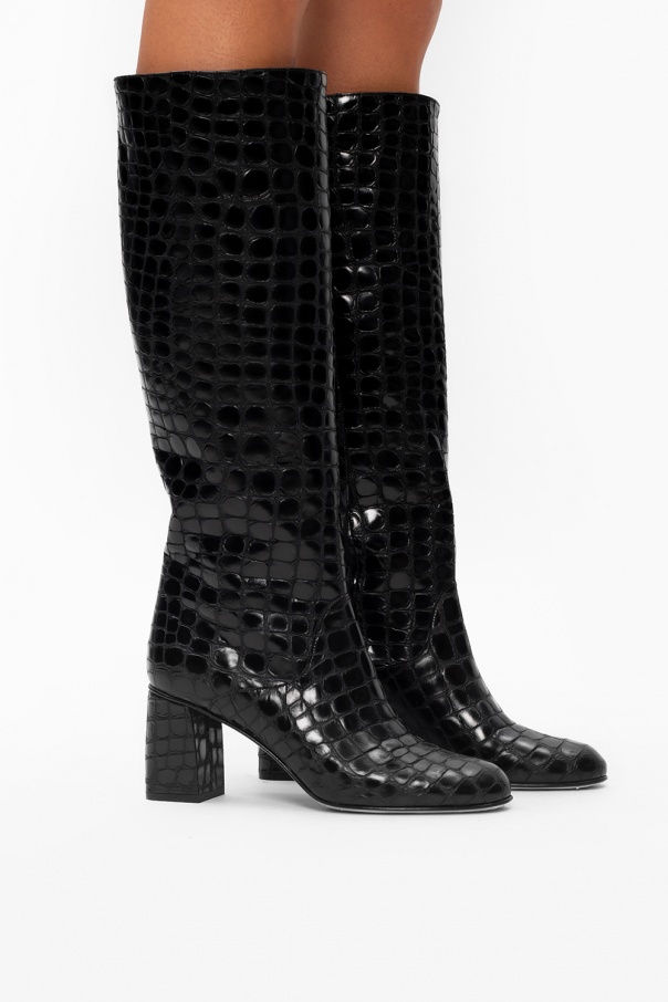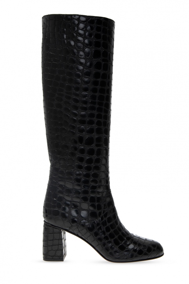 Black ‘Avired’ heeled boots from Red Valentino. Crafted from leather with a crocodile skin effect, this pair is set on a beige leather sole.