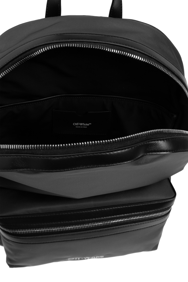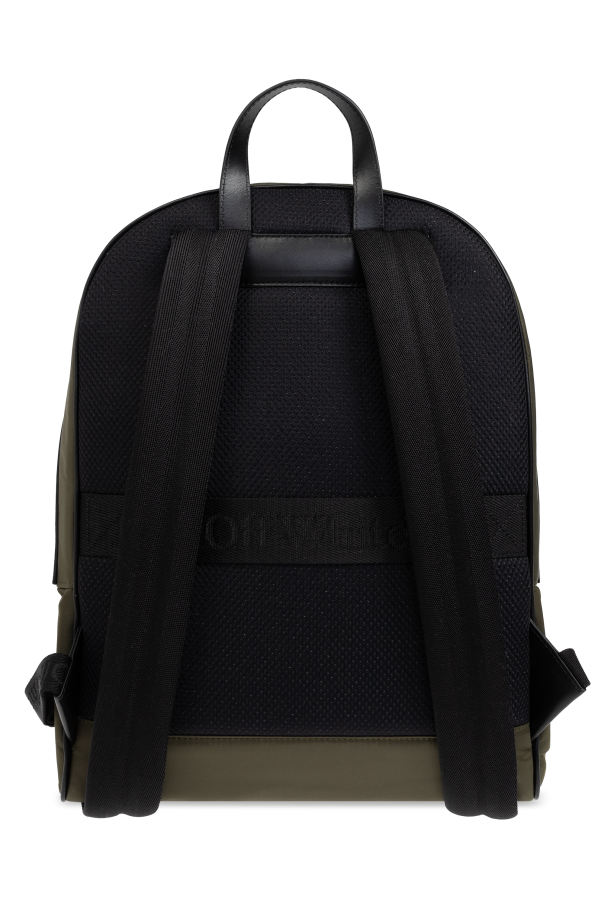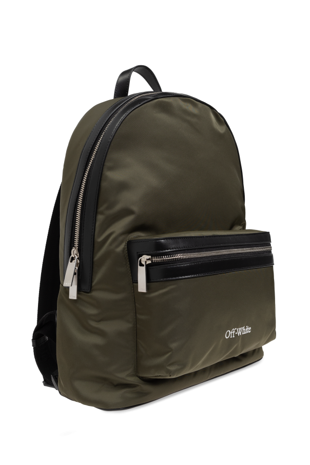 Introducing the Off-White Logo Backpack, an epitome of refined elegance and contemporary sophistication. Rendered in a classic rectangular silhouette with rounded top corners, this backpack exudes minimalist allure with its solid green hue complemented by black and silver accents. Crafted from a durable, slightly lustrous synthetic material, the backpack features a large, front horizontal pocket adorned with a sleek black strip along the zipper, prominently displaying the iconic Off-White logo in crisp white. The main compartment is secured with a robust, metallic zipper, ensuring the safety of your essentials. The back panel, designed for comfort, is made from black fabric and is fitted with wide, padded, adjustable straps for personalized fit. Inside, the bag includes an additional slip pocket and a branded label, enhancing its functional design. Perfect for daily use or more formal occasions, the backpack is equipped with a small top handle for easy carrying. Why Choose This Product? Exquisite Design: A classic shape with a modern twist, perfect for any occasion. High-Quality Materials: Crafted from a blend of leather, fabric, and metal for durability and style. Comfort & Versatility: Wide, adjustable shoulder straps and a comfortable back panel. Secure Storage: Solid metal zippers on both the main compartment and front pocket. Iconic Branding: Featuring the renowned Off-White logo, a symbol of luxury and contemporary fashion.
