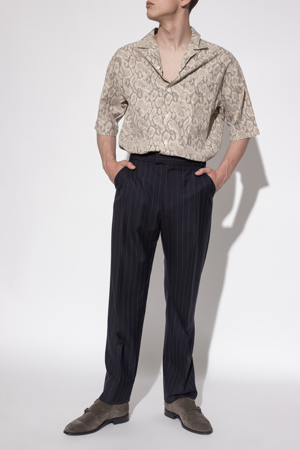 Khaki ‘Finnion’ shoes from Jimmy Choo. Made of suede, this pair features two straps with metal buckles with a logo, round toe and black leather sole.