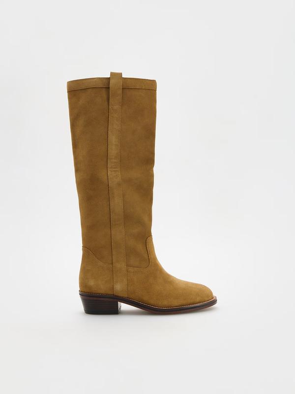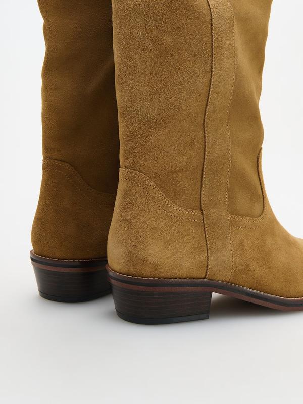 Чоботи типу казаки, виготовлені з натуральної замші. Колір дещо світліший. Одягнулись раз. Розмір повний 39, довжина устілки - 25 см. Ззроблю додаткові фото за потреби.