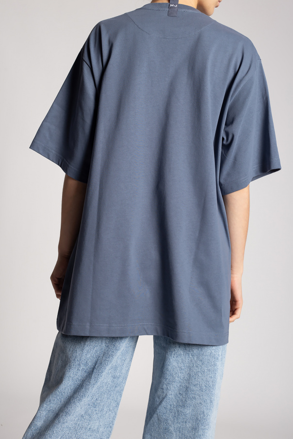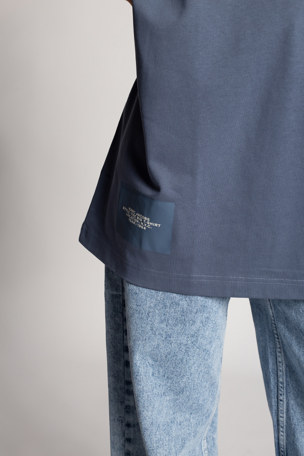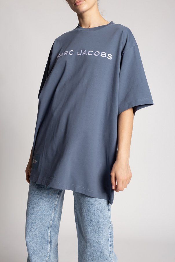 Grey and blue crewneck T-shirt from Marc Jacobs. Crafted from cotton with an oversize silhouette, this style showcases the brand\'s logo embroidered in light grey.