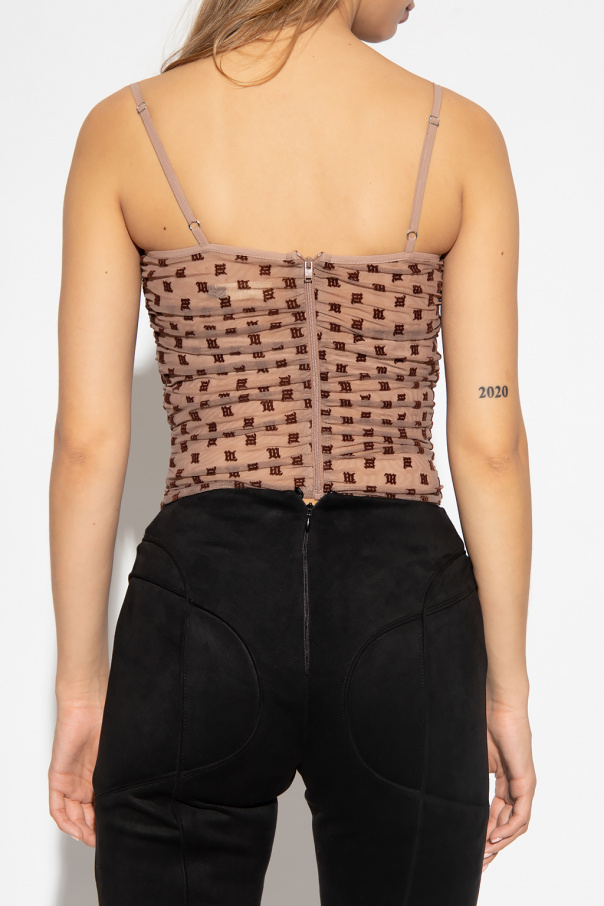 Beige tank top from MISBHV. Embellished with a monogram pattern, this style features adjustable shoulder straps and a back zipper.