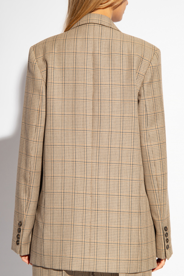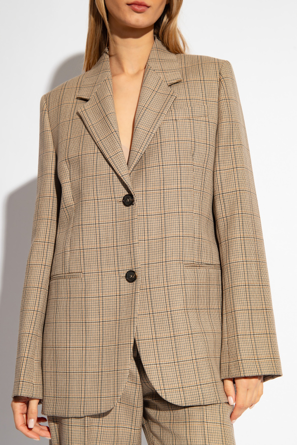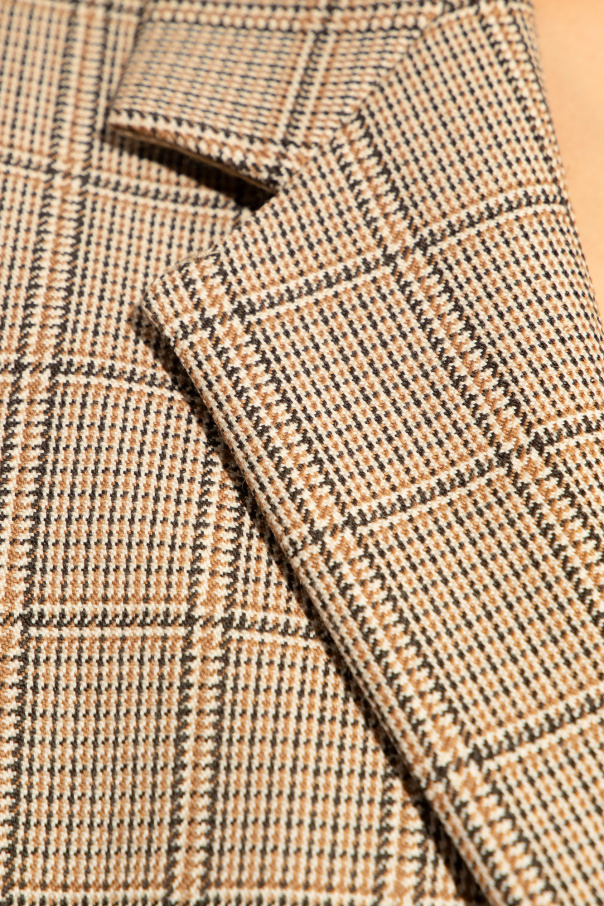 Beige and brown blazer from Toteme. Crafted from wool, this design features button fastenings, a check pattern, peak lapels, three slip pockets and long sleeves with buttoned cuffs.