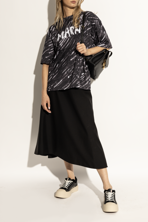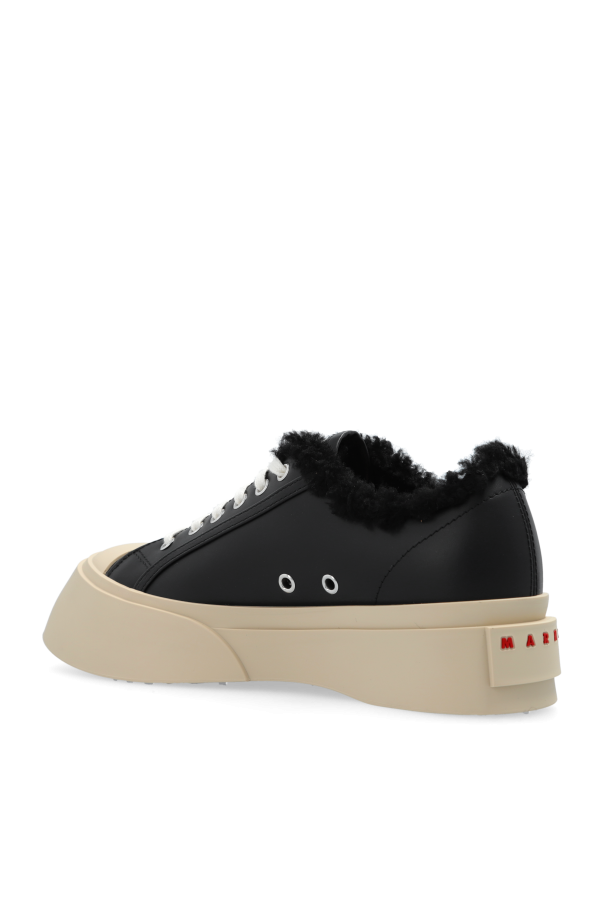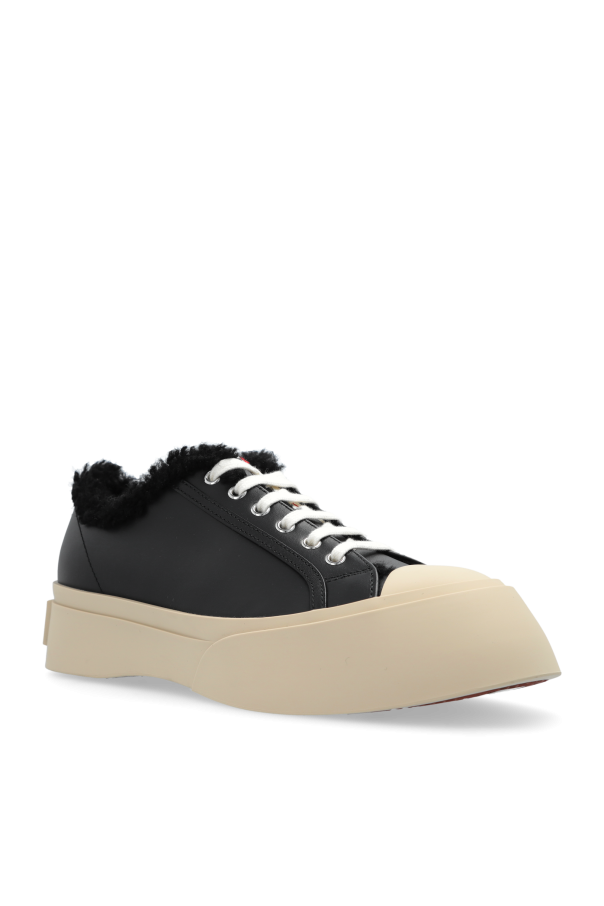 Introducing the epitome of sophistication and modern flair – the Platform Sneakers from the illustrious Marni collection. These sneakers boast a refined low-profile silhouette with a rounded toe, exuding an understated elegance. Crafted from pristine black leather, the exterior is sleek and unembellished, while the interior is luxuriously lined with soft black fur, ensuring maximum comfort. The design is accentuated by crisp white laces that beautifully contrast with the black leather upper. The thick, beige platform sole not only adds a touch of height but also guarantees stability and durability. Adorning the tongue is a subtle designer label, while the rear platform bears the iconic Marni logo, a testament to the brand\'s exquisite craftsmanship. Why Choose This Product? Exclusive Italian design by Marni High-quality black leather exterior Luxurious black fur lining for added comfort Elegant beige platform sole for height and stability Stylish white laces for a striking contrast Subtle designer branding on tongue and sole