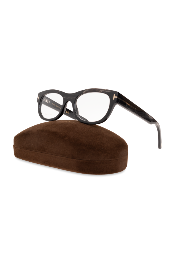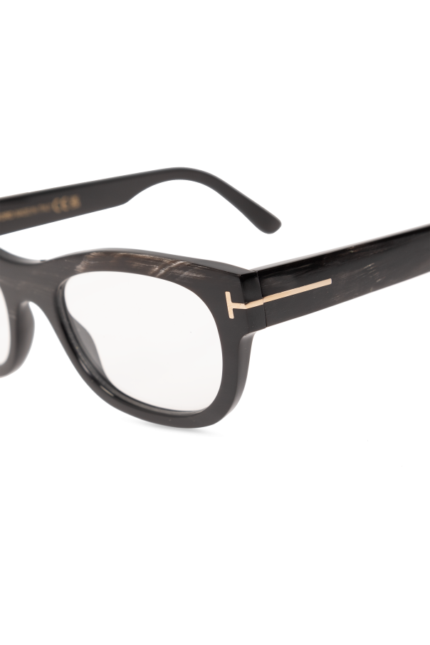 Introducing the pinnacle of refined vision, the Tom Ford Unisex Rectangular Eyeglasses. This exclusive piece from the renowned fashion house marries superior craftsmanship with unparalleled style, ensuring a distinguished presence. Crafted from the finest 100% natural horn, these glasses promise not only durability but also an eco-conscious choice for the discerning individual. The dominant black hue of the frames exudes classic elegance, while the rectangular silhouette offers a contemporary edge suitable for both formal and casual ensembles. Attention to detail is paramount, with the designer\'s iconic logo subtly displayed on the metal detail of the temples, adding an exclusive touch. The broad, flat temples are designed for optimal comfort, allowing for extended wear without compromise. Further enhancing its allure, the eyeglasses feature delicate gold accents on the hinges and the designer\'s logo, presenting a subtle nod to luxury. The inclusion of \'blue block\' lenses shields your eyes from harmful blue light, ensuring visual comfort during prolonged digital device usage. Accompanied by a suede-like case, this accessory is not only a statement of fashion but also a guardian of your optical health. Why Purchase This Product? Eco-friendly materials showcasing commitment to sustainability. Exclusive design elements including the designer\'s emblematic logo and gold accents. Advanced lens technology to protect against blue light. Comes with a dedicated, stylish case for protection and portability. Seamlessly blends with both high-end and everyday attire.
