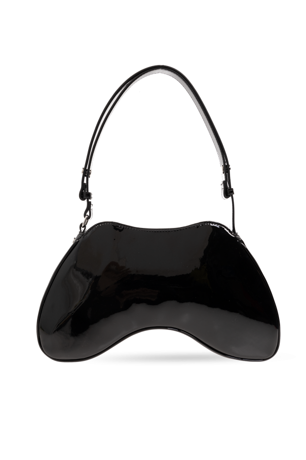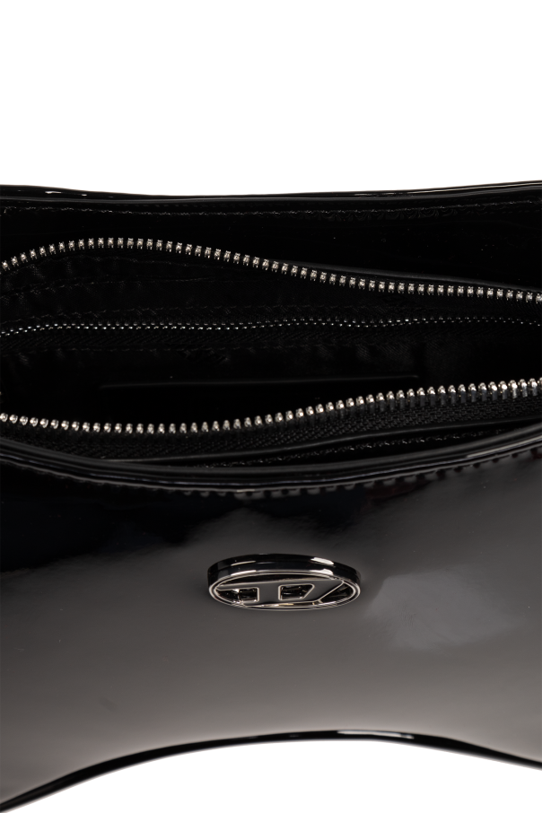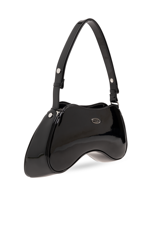 Black ‘PLAY’ shoulder bag from Diesel. Made of faux patent leather, this design features a zip fastening, logo detail, adjustable strap, silver-tone metal hardware and one internal compartment with one zip pocket.