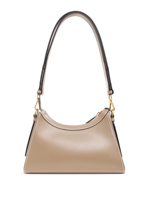Introducing the epitome of sophistication and luxury, the Balmain Shoulder Bag. Crafted with the utmost precision, this exquisite piece is rendered in a lustrous brown hue, imbued with a subtle sheen that elevates its elegance. The material, a premium quality 100% Calfskin Leather, speaks volumes of its luxurious lineage, complemented by meticulous stitching and a smooth texture that testify to its impeccable craftsmanship. The front flap of the bag proudly displays the iconic gold \"B\" logo, underscored by the \"BALMAIN\" inscription, a hallmark of the esteemed fashion house. Gold metal accents, including zippers and buckles, not only serve as decorative flourishes but also enhance functionality, securing belongings with a zip closure. The bag\'s long, adjustable strap, adorned with gold carabiners, allows for versatile shoulder wear, adding a touch of elegance and practicality. The interior reveals a thoughtfully organized space, featuring compartments for easy storage of essentials. Its semi-circular shape with a flat bottom presents a unique and contemporary design, while white contrasting stitches accentuate its shape and structure, adding character and a distinctive appeal. Why Purchase This Product? Exclusivity and prestige of the Balmain brand Luxurious 100% Calfskin Leather construction Elegant design with functional gold metal accents Secure zip closure and well-organized interior Adjustable strap for versatile wearing options Unique semi-circular shape with distinctive stitching details