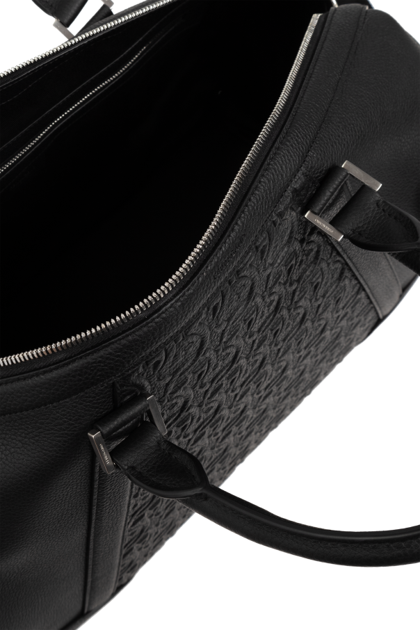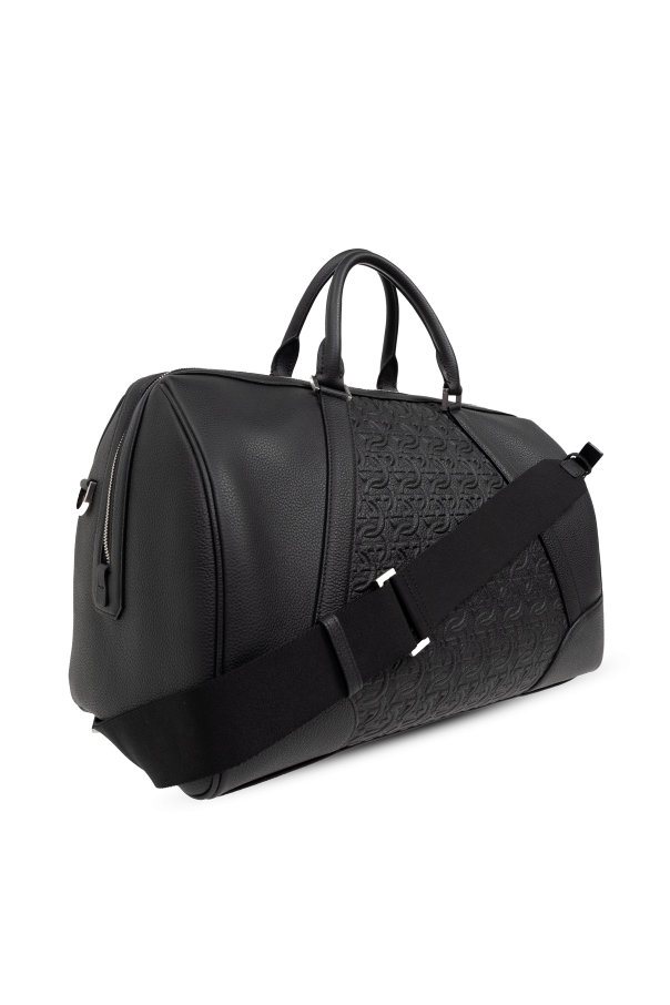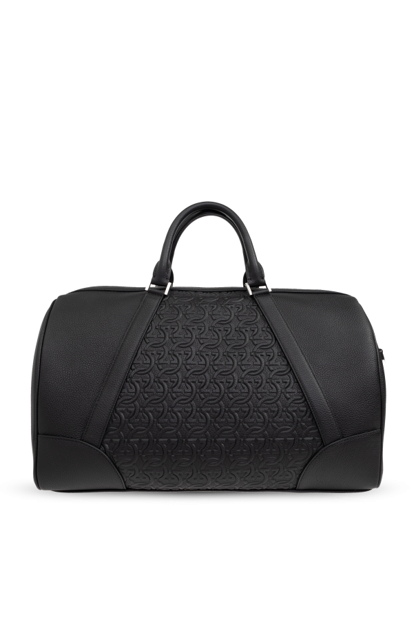 Introducing the exquisite FERRAGAMO Handheld Bag, a paragon of minimalist elegance and functionality. Crafted from a luxurious blend of calfskin leather and premium materials, this piece stands out as a hallmark of the esteemed FERRAGAMO collection. The bag\'s rectangular silhouette with subtly rounded corners exudes a modern, sophisticated charm. Its surface, adorned with a distinctive, embossed pattern specific to the FERRAGAMO brand, adds a layer of depth and texture, making it unmistakably unique. The matte finish with a slight sheen further underscores its high-quality craftsmanship. Designed for versatility, it comes equipped with sturdy handles and a detachable, adjustable shoulder strap featuring silver or nickel-finish metal elements that beautifully contrast the bag\'s black hue. These metal details may also bear the designer\'s logo, adding a touch of luxury. The bag\'s functionality is enhanced by a secure zipper closure for the main compartment, ensuring your belongings are safe and accessible. Attention to detail is evident in the precise and even stitching, indicative of the bag\'s superior construction. Whether carried by hand or over the shoulder, as demonstrated by the model\'s portrayal, it maintains its elegant proportions, seamlessly blending with any upscale attire. Why Purchase This Bag? Exclusive FERRAGAMO design with a unique embossed pattern. Luxurious calfskin leather construction with meticulous craftsmanship. Practical features including a detachable shoulder strap and secure zipper closures for the main compartment and an inner pocket. Elegant, versatile styling suitable for a variety of occasions.