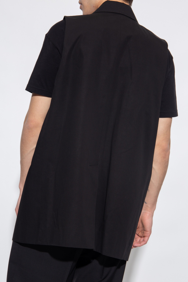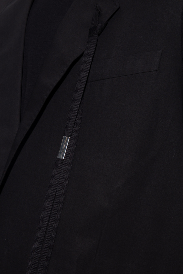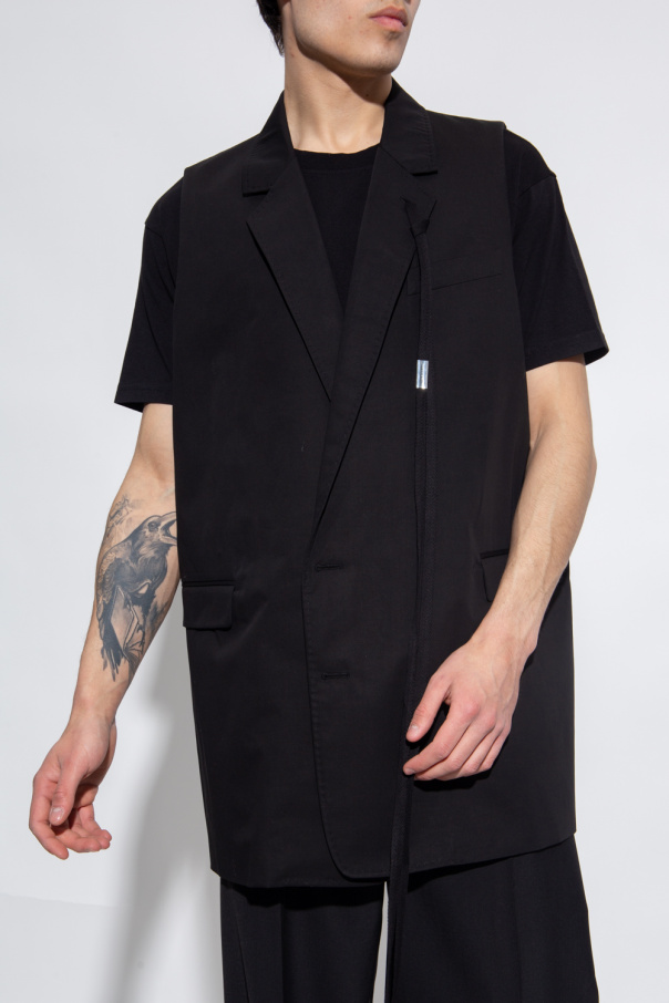 Black ‘Amandus’ sleeveless blazer from Ann Demeulemeester. Crafted from cotton, this style features button fastenings, notch lapels, two flapped pockets on the front, a single vent at the back and decorative drawstring with silver-tone applications with an embossed logo.