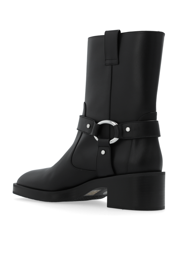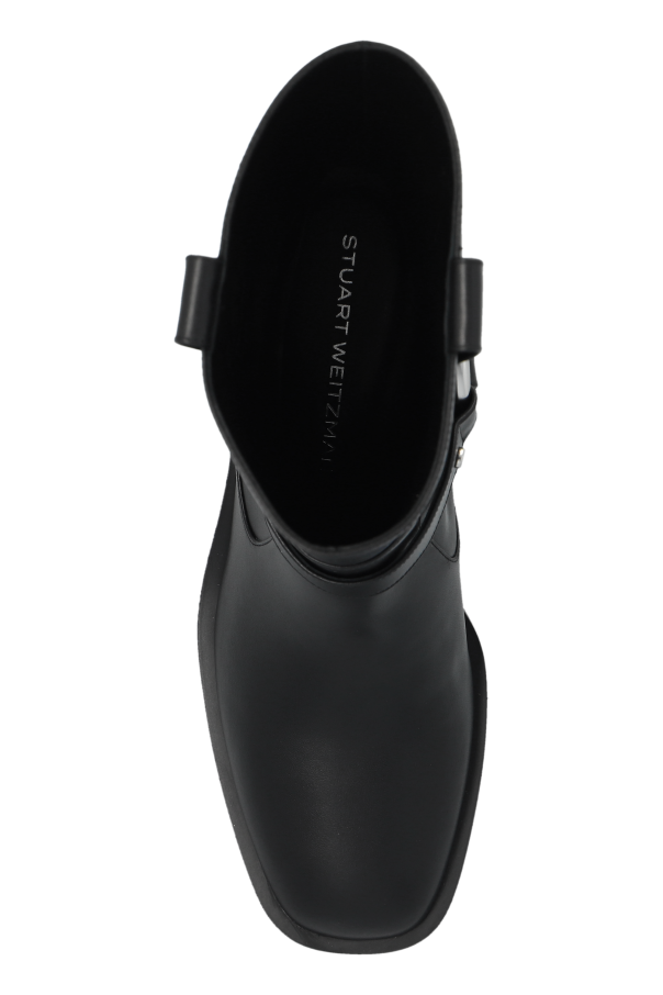 Introducing the epitome of sophistication and timeless style: the Leather \'Jax\' Booties by the renowned designer Stuart Weitzman. Crafted with meticulous attention to detail, these black leather booties boast a sleek silhouette, complemented by a rounded toe and a low, stable heel for unparalleled comfort and stability. The boots\' distinctive charm is accentuated by an ornamental strap encircling the ankle, complete with a buckle that not only adds an element of elegance but also offers adjustability. Ease of wear is thoughtfully ensured through a zipper on the inner side, facilitating effortless slipping on and off. Additionally, a pull loop at the back further streamlines the wearing process. Made from premium black leather both inside and out, these booties promise durability and a high-quality finish, typical of Stuart Weitzman\'s esteemed craftsmanship. Subtle yet significant, the designer\'s logo is discreetly placed inside the boot, serving as a hallmark of exclusivity and authenticity. Why Purchase These Booties? Elegant design with an adjustable ankle strap for a refined look Convenience and comfort with an easy slip-on feature and a supportive low heel Exquisite craftsmanship from high-quality leather ensuring longevity Subtle branding that underscores the luxury and authenticity of Stuart Weitzman
