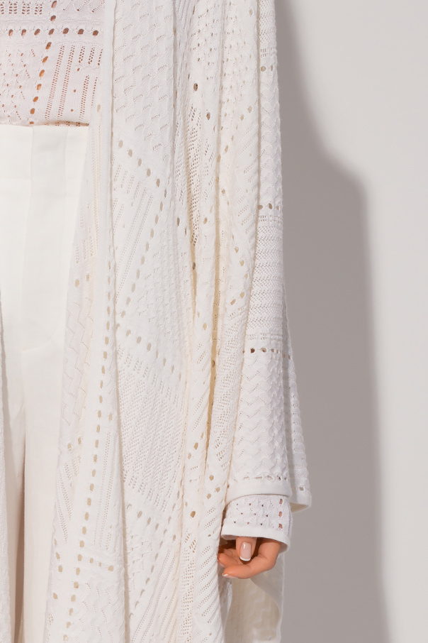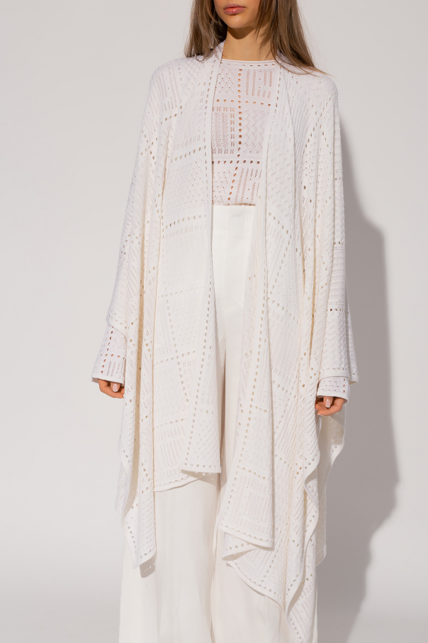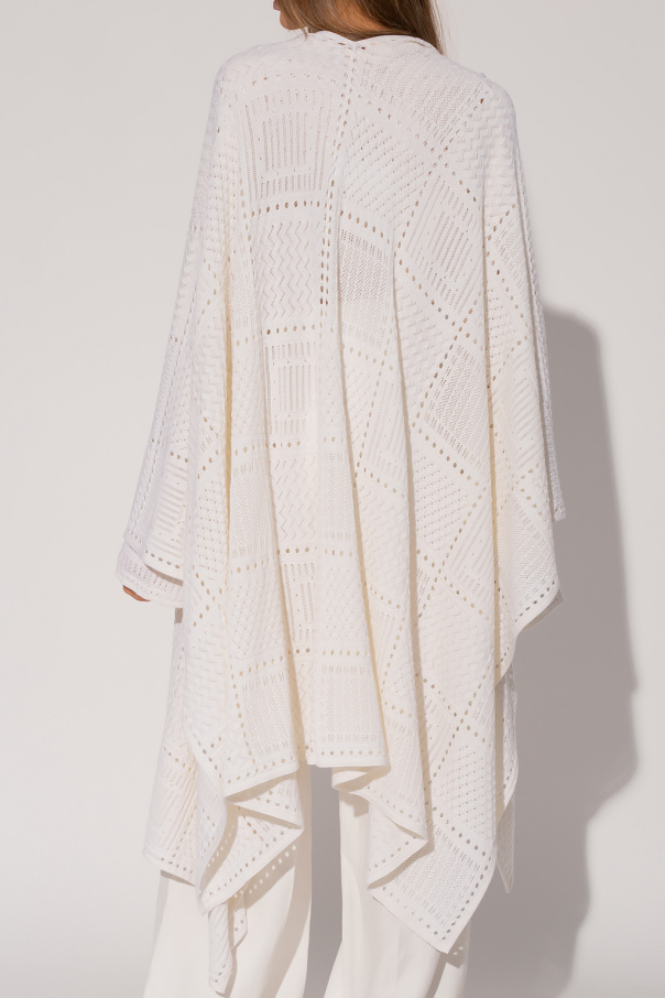 Cream poncho from Chloé. Crafted from a wool, cashmere and silk blend, this pair features a pattern.