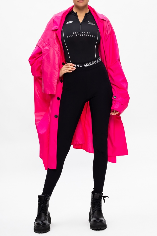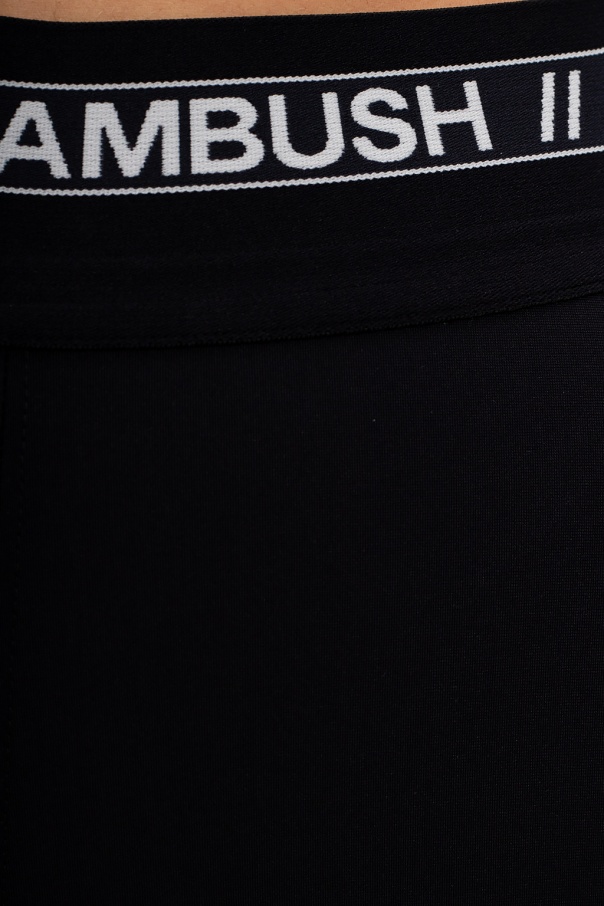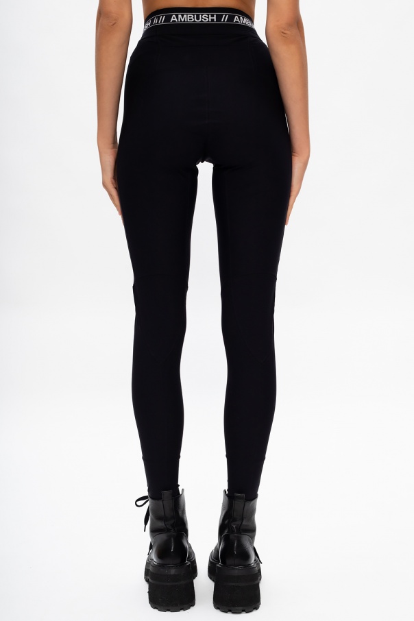 Black training leggings from Ambush featuring an elastic waistband with a logo embroidery, a back zip pocket and decorative legs.
