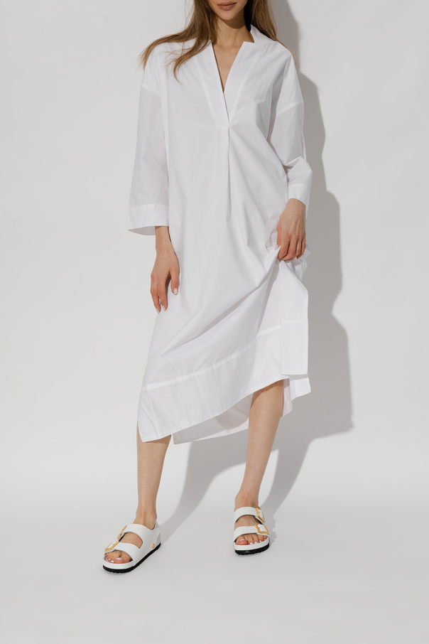 White ‘Milano’ sandals from Birkenstock. Crafted from leather with a crocodile skin effect, this model sits on a black EVA foam sole and features adjustable straps with gold-tone buckles, a logo application on the side and an anatomically shaped cork-latex footbed. Narrow width.