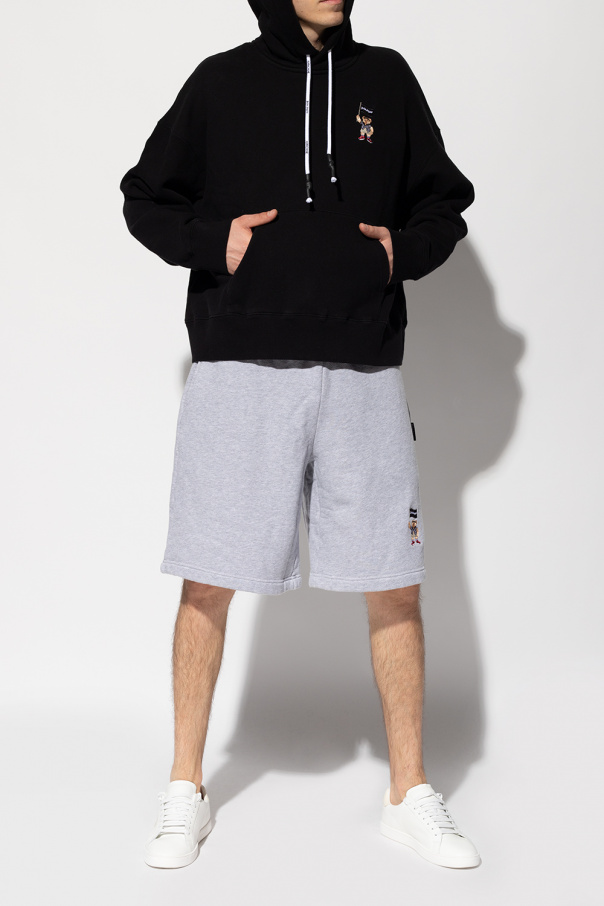 White and beige ‘New Tennis’ sneakers from Palm Angels. Crafted from leather, this lace-up pair sits on a white rubber sole and showcases perforations and a gold-tone logo print on the side.