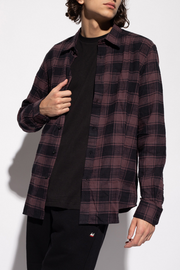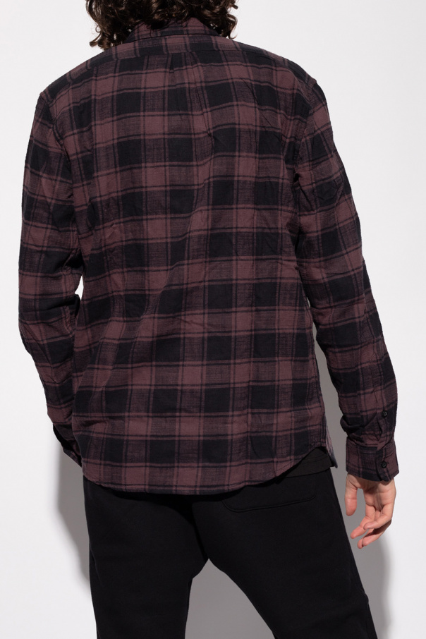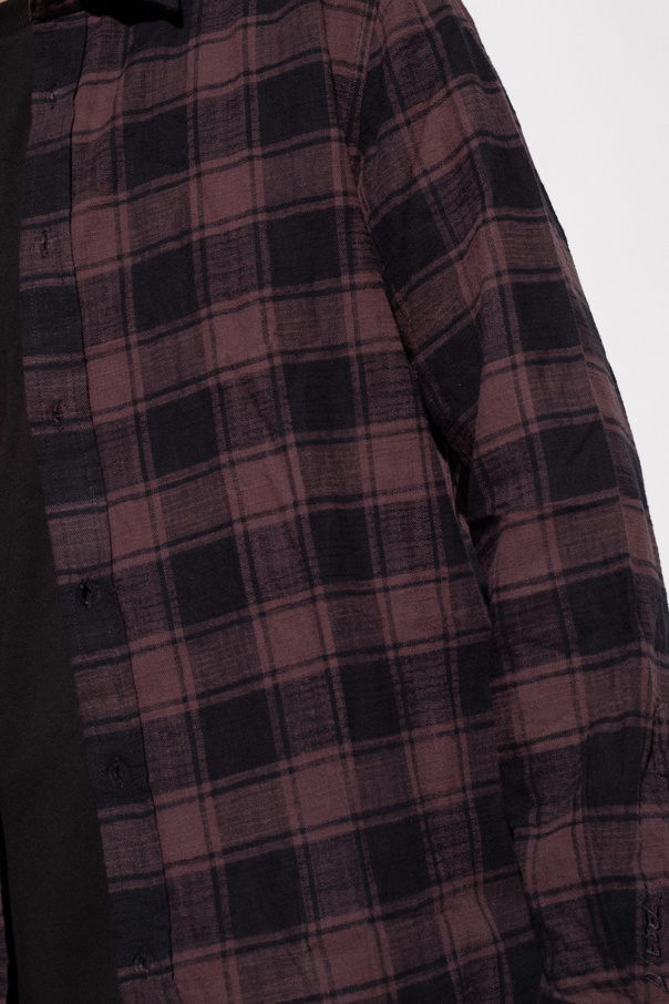 Purple and black shirt from Diesel. Crafted from cotton with an all-over check pattern, this style features button fastenings and long sleeves with button cuffs.