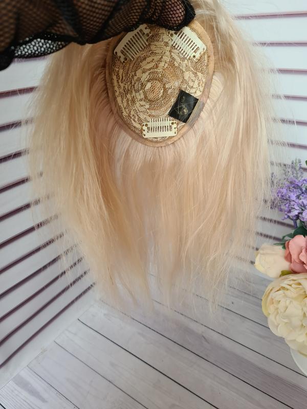 Полупарик накладка из натуральных человеческих волос без имитации кожи головы.Волос цвет блонд был осветлен мягкий тонкий рассыпчатый прямойструктуры.Можно тонировать красить завивать..Средство совершенно безвредное для кожи головы, при этом держится замечательно. Вы сможете жить полноценной жизнью, и никаких ограничений, как это могло бы быть с париком, не будет. Можно и спортом заниматься – волосы будут держаться потрясающе.Уход за ней очень простой такой как за своими волосами мыть выпрямлять крутить и красить в другой цвет.