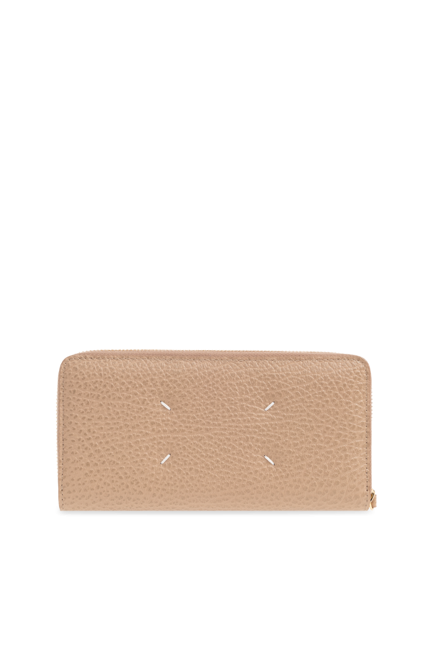 Beige wallet from Maison Margiela. Made of leather, this design features zip-around fastening, the brand’s signature white stitches and silver-tone metal hardware. It has two bill compartments, one zipped coin pocket, two slip pockets and eight card slots inside.