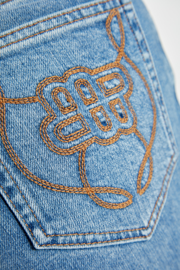 Introducing the exclusive Logo Jeans by the renowned fashion brand, Munthe, founded in 1994 in Copenhagen by creative director Naja Munthe. These jeans embody the brand\'s unique fusion of fashion and art, distinguished by high-quality materials, subtle details, and impeccable craftsmanship. Crafted from premium denim, these skinny jeans feature a high-rise waist for added comfort and a sleek silhouette. The fabric boasts a gently faded, vintage-inspired look, enhancing its stylish appeal. The jeans are adorned with an intricately embroidered logo on the back pocket in a refined brown hue, adding a touch of sophistication. Additional branding is present on a light brown leather patch situated on the back waistband, further accentuating their exclusivity. The jeans come in a versatile light blue shade with subtle distressing on the thighs and legs, offering a chic, worn-in effect. They are equipped with a classic five-pocket design, including two front pockets, a small coin pocket, and two back pockets, and secured with a metal button and zipper fly. Why Choose These Jeans? Expertly crafted from high-quality organic cotton and elastane for durability and comfort. Elegant high-rise and skinny fit ensure a flattering and stylish look. Unique embroidered logo and leather patch highlight the brand\'s prestige. Versatile light blue color with a vintage touch suitable for various occasions. Classic five-pocket design provides practical functionality.