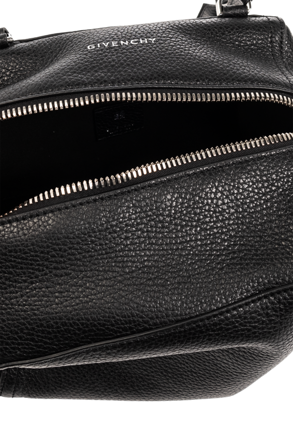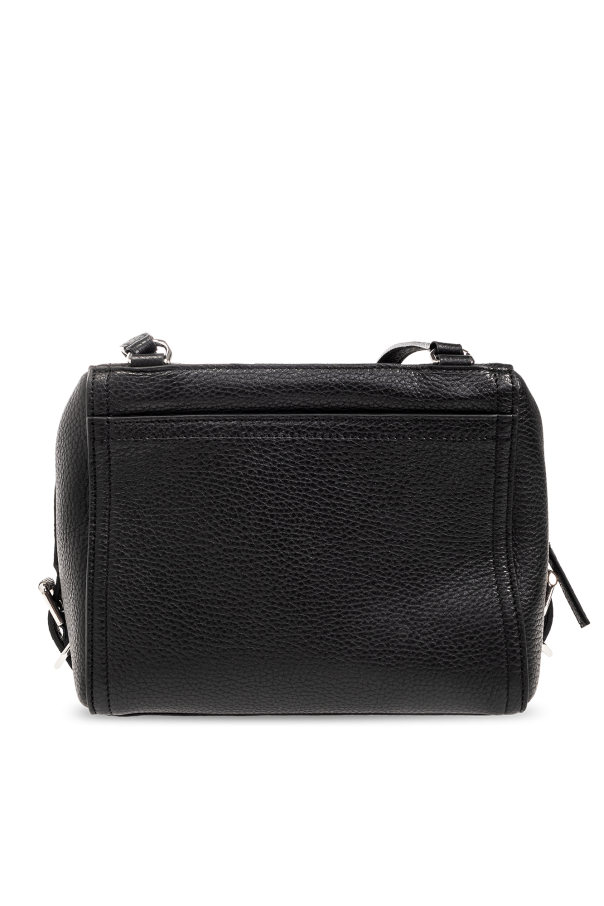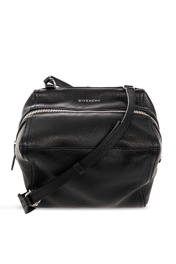 Black ‘Pandora Small’ shoulder bag from Givenchy. Made of grained bovine leather, this design features a two-way zip, logo detail, buckle straps on the side, back pocket, adjustable shoulder strap, silver-tone metal hardware and one internal compartment with one slip pocket.