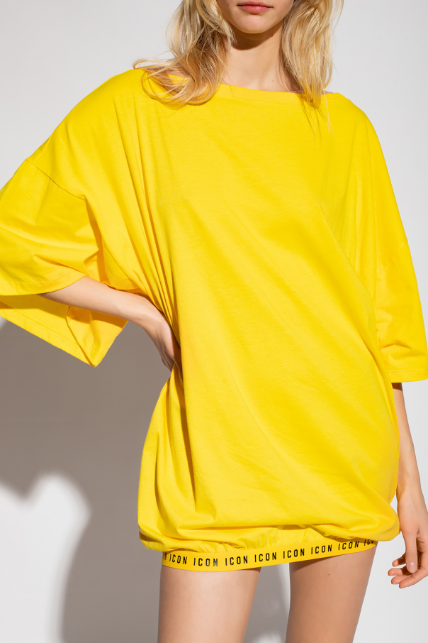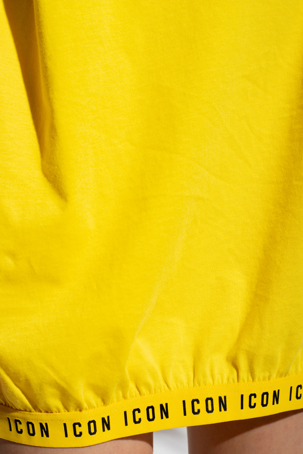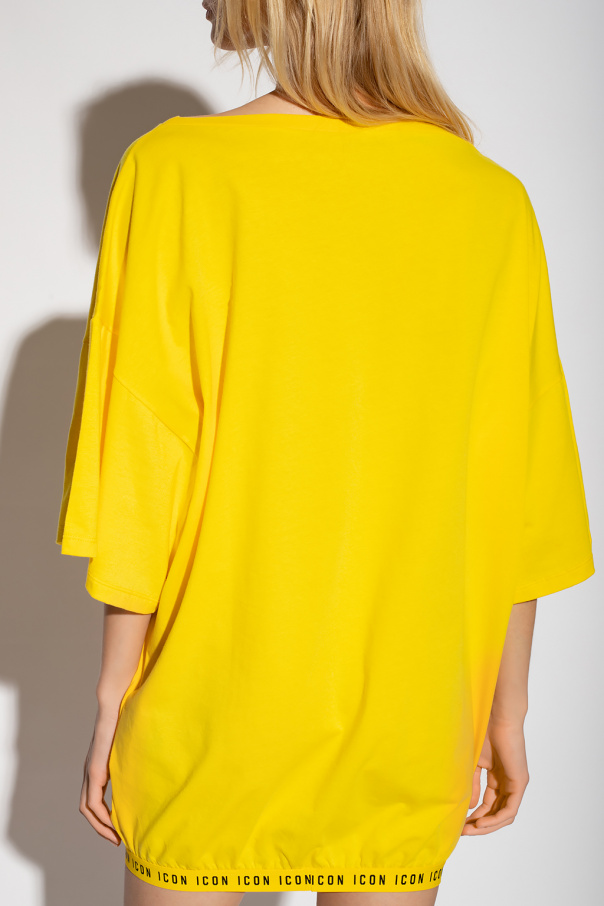 Yellow crewneck beach T-shirt from Dsquared2. Made of cotton with an oversize fit, this style features short sleeves, an elasticated collar and a branded hemline.