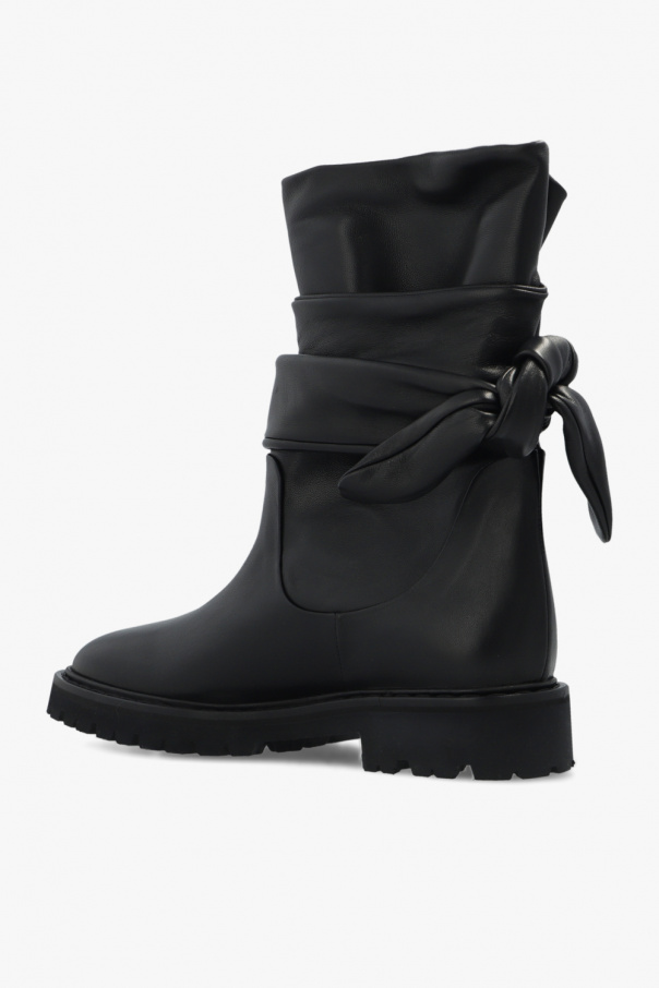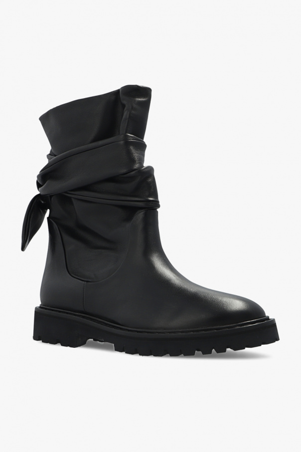 Black ‘Nori’ ankle boots from Iro. Crafted from leather, this almond toe is complete with a decorative tie and black rubber sole.