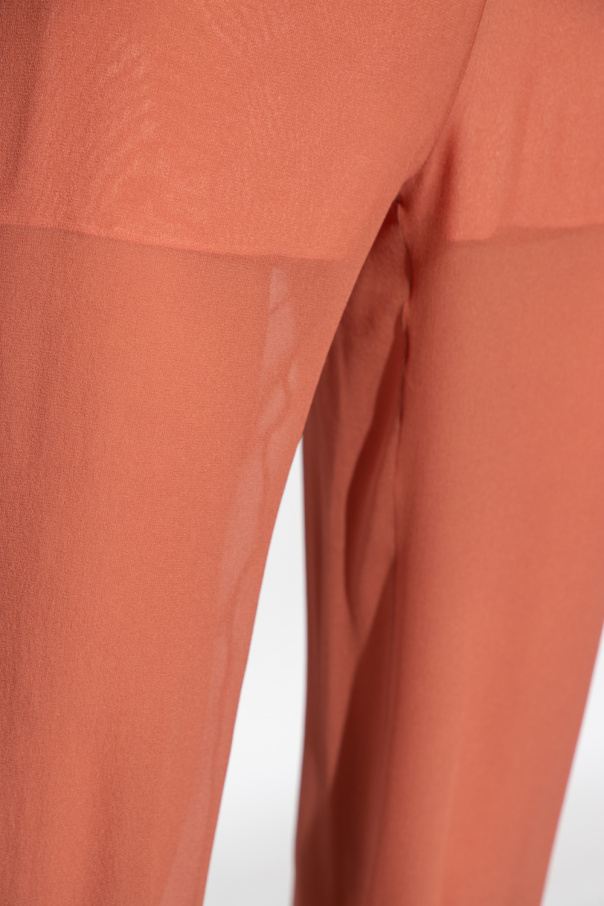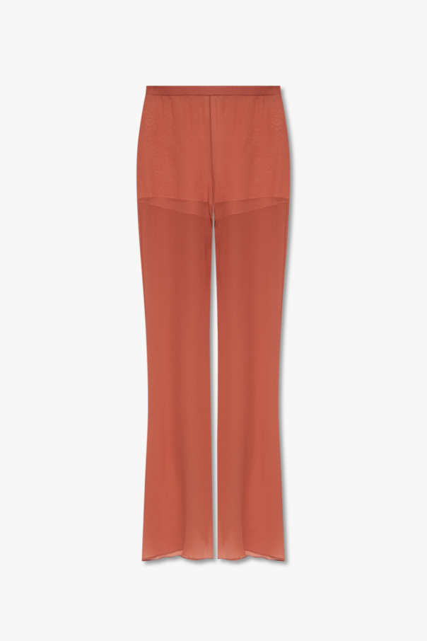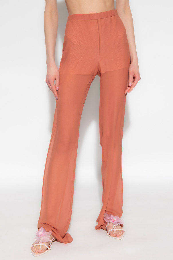 Orange trousers from Nensi Dojaka. Made of silk, this pair fastens with a side zipper and hook & eye closure and features an elasticated waistband and transparent legs.