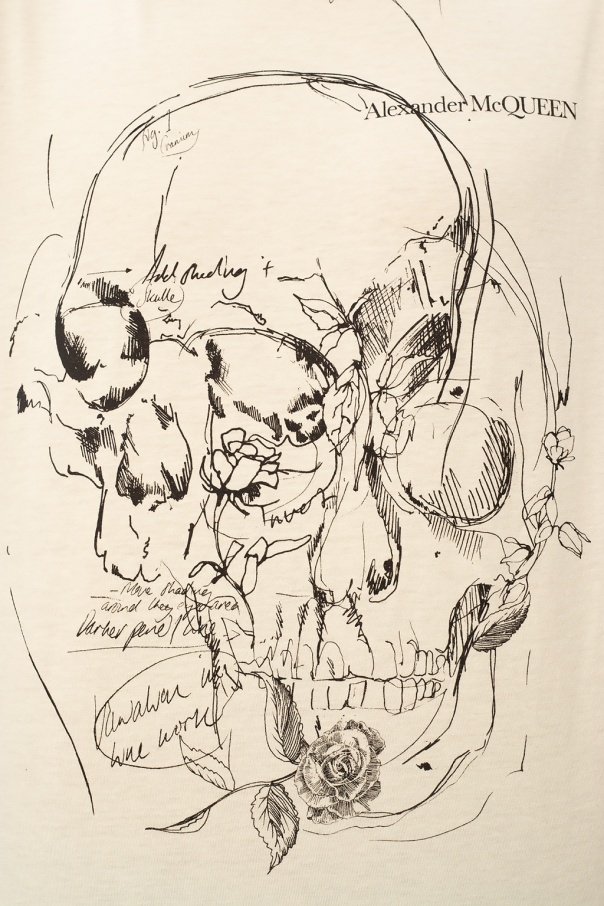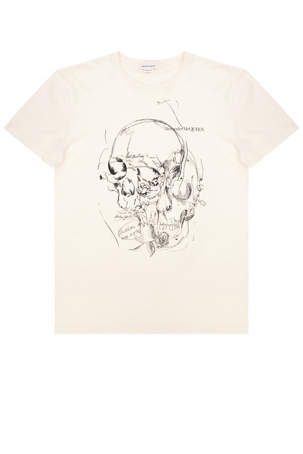 Cream crewneck T-shirt from Alexander McQueen. Made of cotton, this design is decorated with a black logo embroidery.