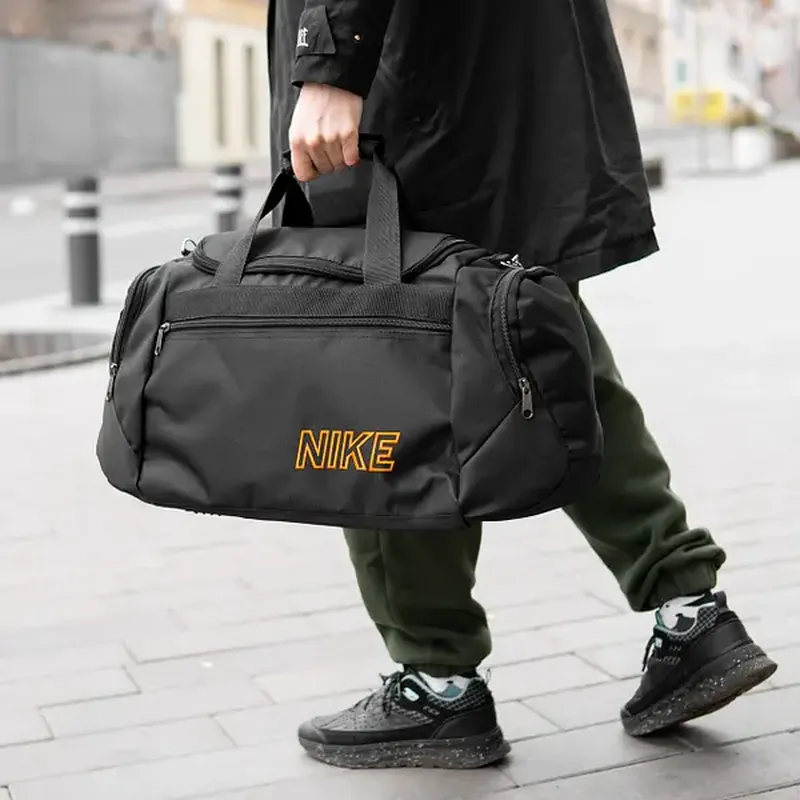 Сумка Nike ORANJE - изготовлена из чорной водоотталкивающей ткани. Несмотря на недорогую стоимость данная модель очень функциональная и удобная. Вмещается несколько комплектов сменной одежды. Идеальный вариант для любителей тренировок.