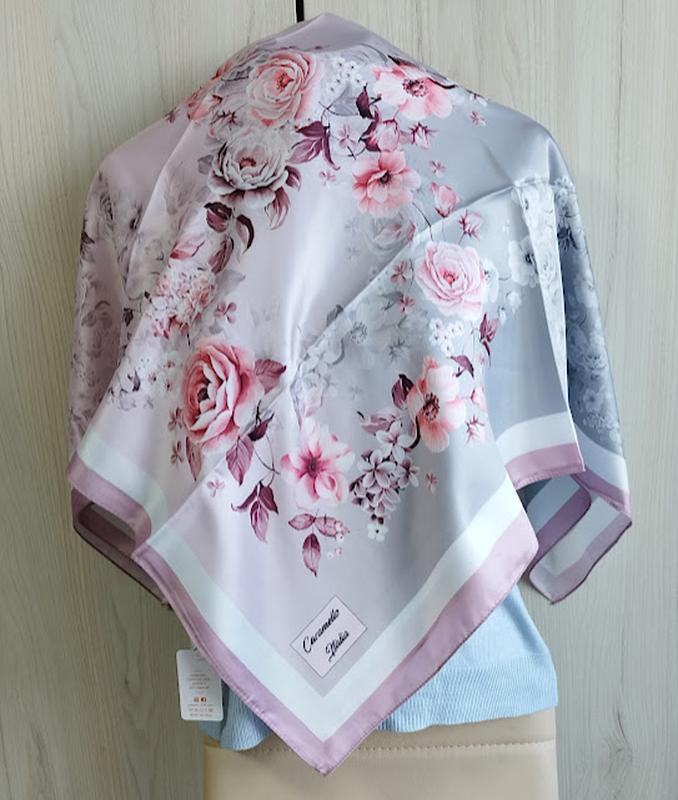 Роскошные платки с цветочным орнаментом, шелковистые, итальянский атлас, можно носить на 3 разные стороны.