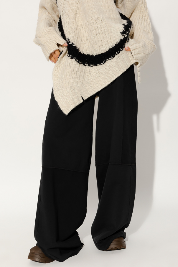 Black sweatpants from MM6 Maison Margiela. Fastened with drawstrings, this pair features an elastic waistband, a logo embroidery, two front pockets and wide legs.