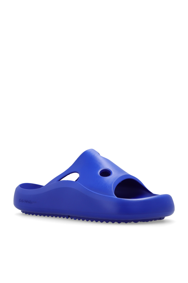 Blue ‘Meteor’ slides from Off-White. Made from EVA foam, this pair features decorative cut-outs and an embossed logo on the side.