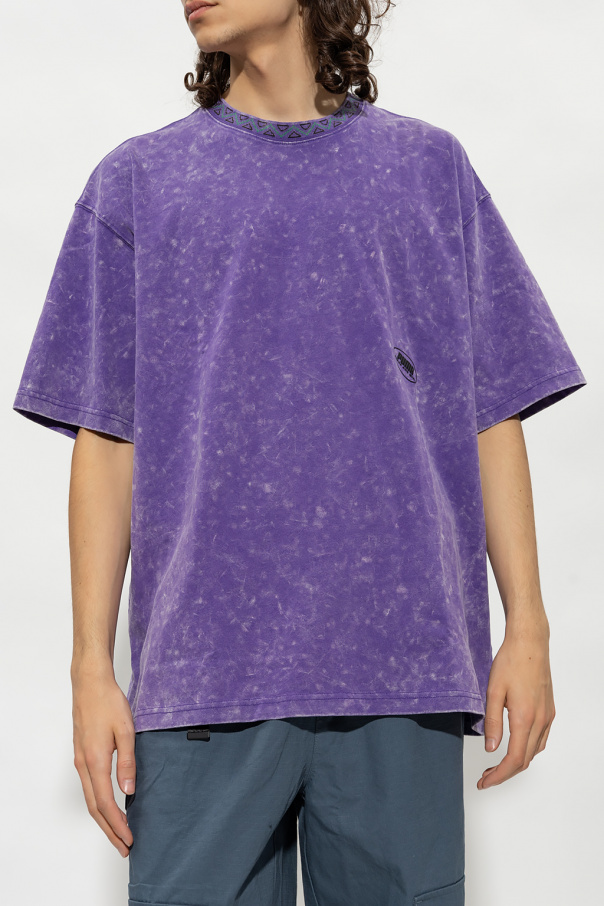 Purple T-shirt with a vintage effect from Puma x PAM. Made of partially recycled cotton, this short sleeve design features a printed logo pattern and ribbed crew neck.