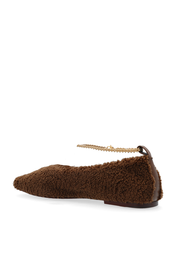 The ‘Augusta’ Ballet Flats by Maria Luca epitomize timeless elegance infused with modern comfort. Crafted with an outer layer reminiscent of plush fur, these flats boast a delightfully soft and cozy aesthetic. The interior, lined with luxurious leather, ensures an exquisite comfort experience, making them perfect for all-day wear. The classic shape, characterized by a rounded toe and low profile, lends a sophisticated yet versatile appeal. The rich brown hue imparts a warm, earthy charm, while a delicate chain strap around the ankle adds a touch of refinement and enhanced fit. Designed by Carlotta De Luca, Maria Luca footwear is renowned for its chic and unique creations, meticulously crafted by skilled artisans. The ‘Augusta’ flats embody this philosophy, merging high-quality materials with intricate detailing and a contemporary flair inspired by New York’s architectural elegance. Why Choose the ‘Augusta’ Ballet Flats? Classic design with a modern twist Plush outer material for a cozy feel Luxurious leather lining for ultimate comfort Decorative chain strap for added elegance and improved fit Versatile brown color that complements various styles Flat sole ensuring comfort for everyday wear