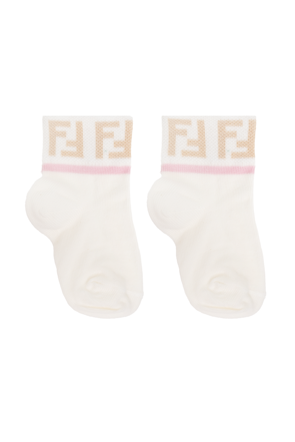 Introducing the quintessence of luxury for your everyday essentials - a Five-Pack Sock Set from the illustrious Fendi Kids collection. Each piece in this set is a testament to the high-caliber craftsmanship synonymous with the Fendi name, offering an enveloping touch of elegance down to the very last detail. Crafted from a sumptuous blend of 86% cotton, 11% polyamide, and 3% elastane, these socks provide an unmatched level of comfort, coupled with the perfect amount of stretch for a snug, yet flexible fit. The palette of white, beige, and soft pink hues radiates a subtle, yet impactful charm, versatile enough to complement any outfit. The distinctive feature of these socks lies in their wide cuffs, adorned with a geometric pattern that subtly incorporates the Fendi Kids logo. This design element, executed in contrasting colors, adds a touch of sophistication, making these socks much more than a mere necessity. Their minimalist aesthetic, devoid of unnecessary embellishments, aligns with the renowned design ethos of Fendi - where quality craftsmanship and discreet branding take center stage. Why Purchase This Product? Elevated Comfort: Premium material blend ensures breathability and softness. Signature Style: Unique geometric pattern with Fendi Kids logo for an understated elegance. Versatile Palette: Soft shades of pink and beige offer easy pairing with various outfits. Exceptional Quality: Even knit and meticulous attention to detail reflect the luxury synonymous with Fendi.