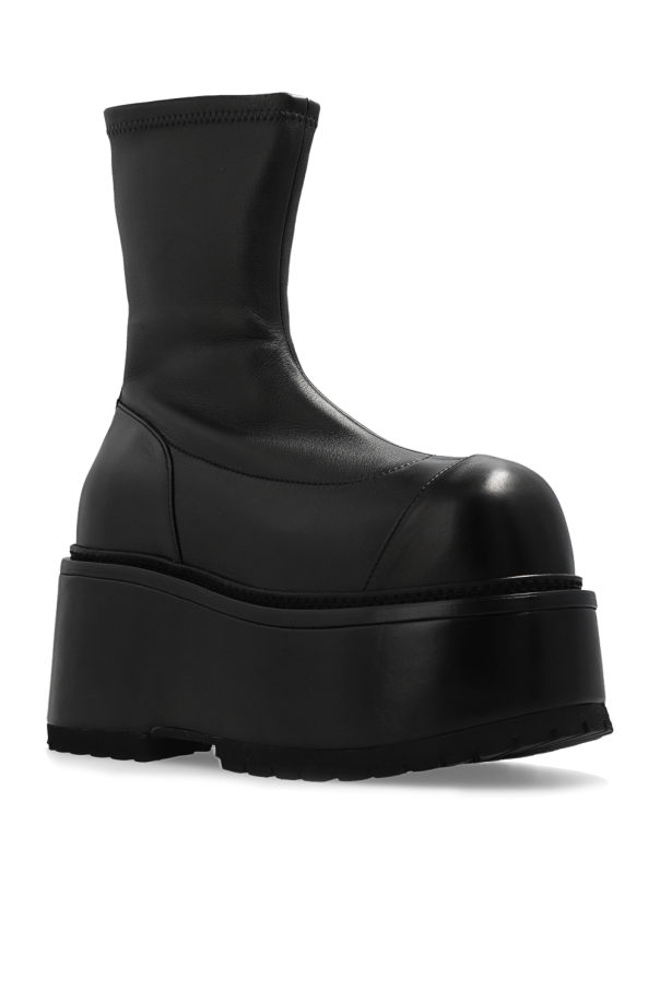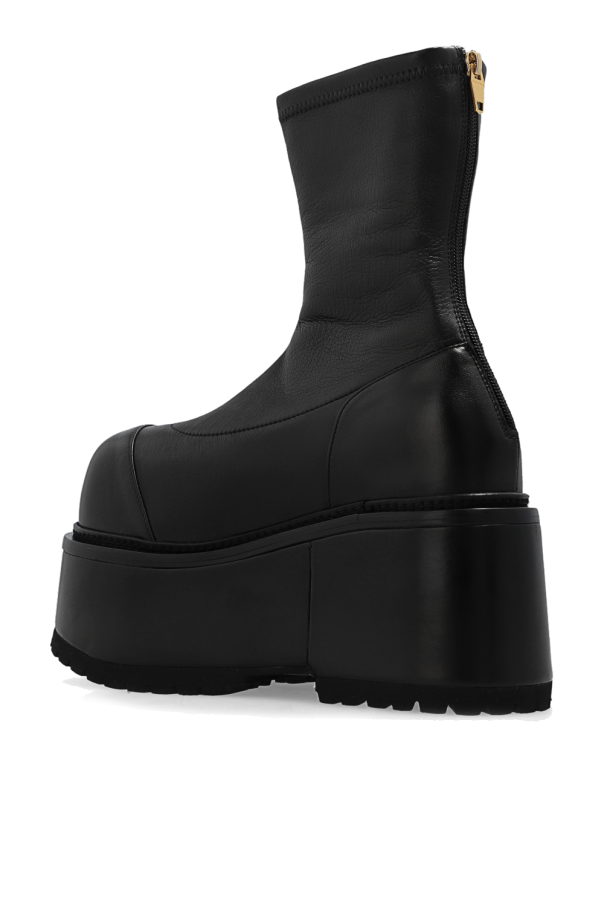 Black platform ankle boots from Balmain. Made of lamb leather, this pair features a zip at the back and black rubber sole.