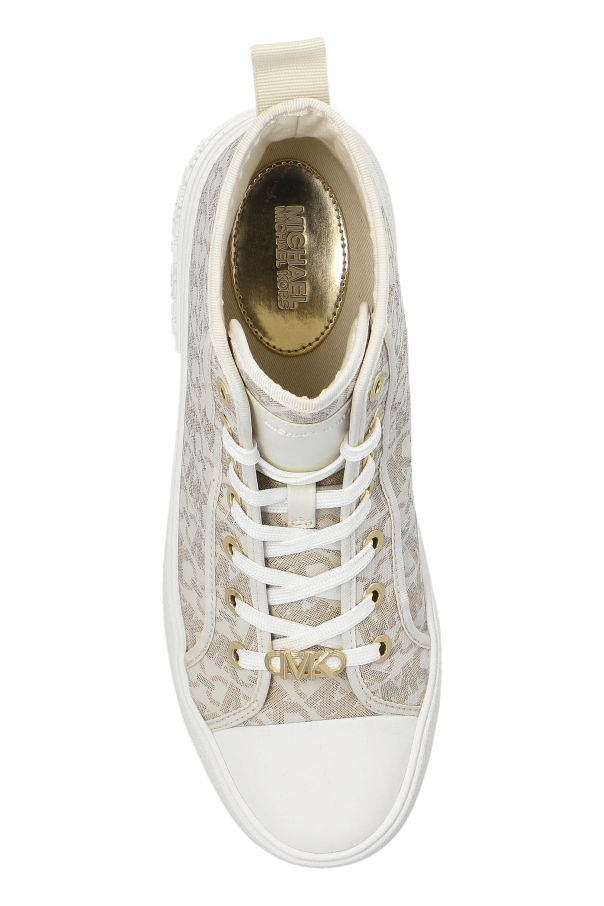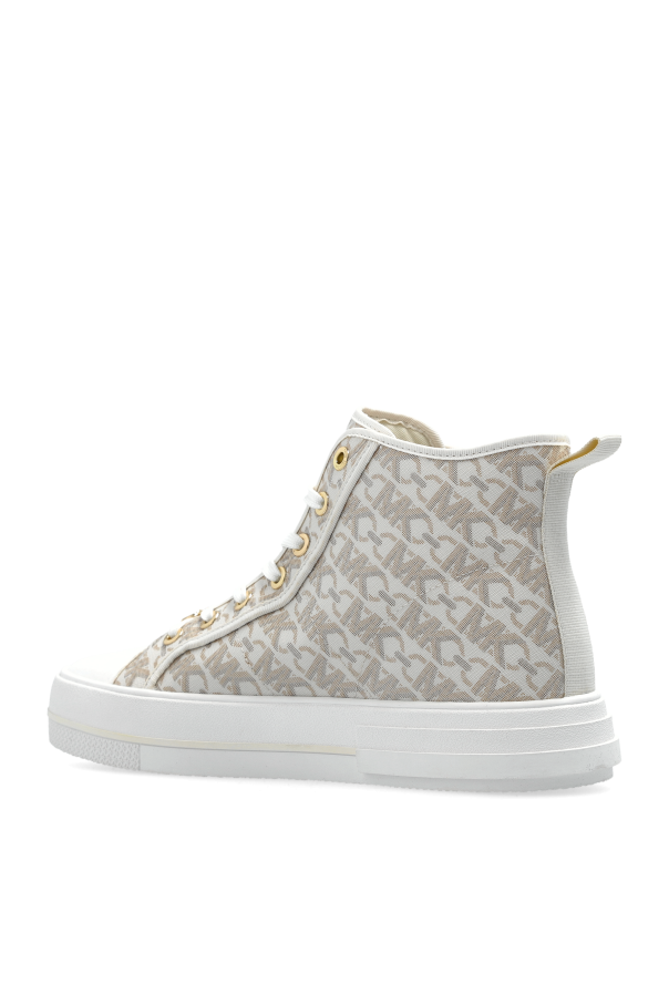 Introducing the Evy Ankle Sneakers by the illustrious designer Michael Michael Kors, an embodiment of elegance and contemporary flair. These exclusive sneakers merge modern design with classic elements, promising an impeccable fusion of fashion and comfort. The sneakers boast a classic high-top silhouette, offering enhanced support and a stylish aesthetic. The upper is adorned with an iconic designer monogram, accentuating their luxurious allure, set in a sophisticated cream hue. Exquisite details include gold eyelets and accents, along with a decorative logo embellishing the laces. A subtly embossed designer logo graces the side of the white rubber sole, ensuring comfort and excellent grip. The interior, featuring a signature designer insole, complements the elegant exterior. Crafted from premium canvas and materials, these sneakers are a testament to superior craftsmanship. Why Choose This Product? Classic high-top design for added support Luxurious monogrammed upper Gold accents for a touch of opulence Signature designer insole for added comfort Renowned Michael Michael Kors craftsmanship