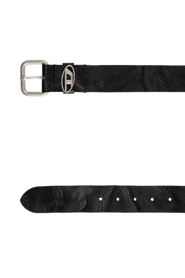Introducing the OVAL D LOGO B-1DR Belt from Diesel\'s exclusive collection, a testament to impeccable craftsmanship and timeless elegance. This belt, resplendent in a dominant black hue, is meticulously crafted from premium leather, bestowing it with an air of sophistication. Its sleek, silver-tone metal buckle boasts a modern rectangular shape, seamlessly complementing the belt\'s luxurious appearance. An exquisite metallic logo in the form of an oval \"D\" graces the side of the buckle, serving as a distinctive hallmark of Diesel\'s unparalleled style. The belt\'s natural leather texture enhances its opulent allure, while the adjustable holes ensure optimal comfort and a perfect fit, making it an ideal accessory for both elegant and casual ensembles. Why Choose This Product? Luxurious design with a sophisticated black leather finish. Distinctive Diesel branding with the iconic oval \"D\" logo. Adjustable fit for unparalleled comfort and versatility. Perfect for elevating both formal and everyday attire.