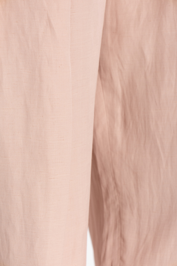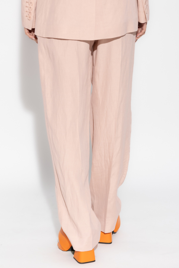 Light pink trousers from Stella McCartney. Crafted from a blend of FSC-certified material and linen, this pair falls with straight legs and features a relaxed fit, a zip fly with hooks, four slip pockets and pleats.