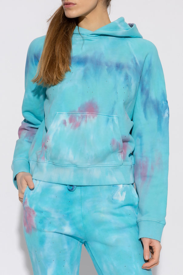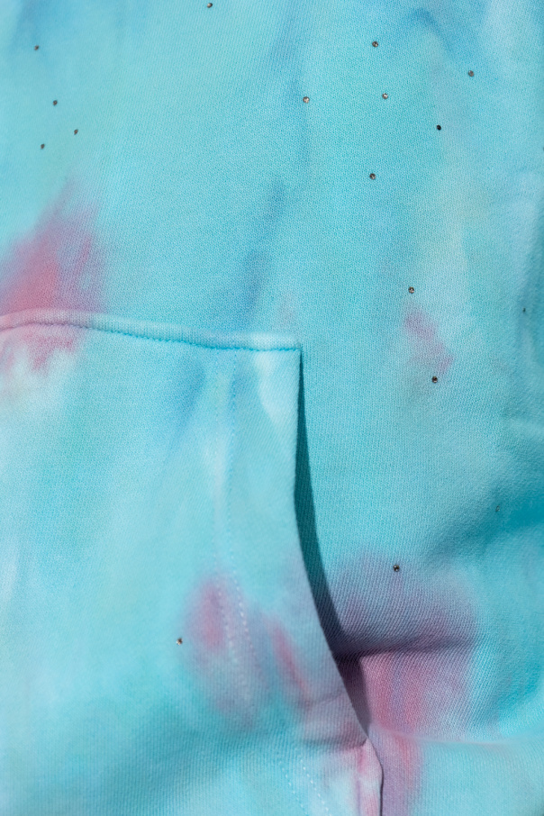 Multicoloured ‘Georgy’ hoodie from Zadig & Voltaire. Crafted from tie-dyed cotton jersey, this style showcases sparkling crystals, a kangaroo pocket, logo embroidery on the sleeve and ribbed trims on the bottom hem and cuffs.