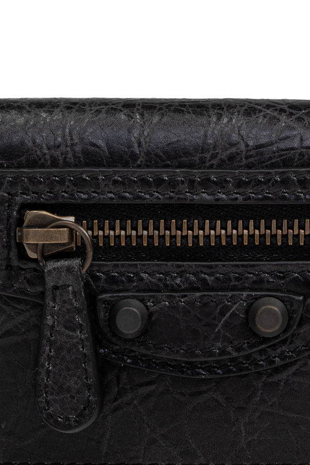 Introducing the exclusive Le City Mini wallet from the renowned designer Balenciaga. This luxurious accessory, crafted from premium black leather, exudes sophistication with its natural creases and texture. Featuring a compact, rectangular shape, the wallet is both stylish and convenient to carry. The front is adorned with a distinctive antique gold metal zipper, complemented by two small rivets and a decorative strap, adding a touch of elegance to its design. The exterior proudly displays the embossed logo of Balenciaga, highlighting its exclusivity. Inside, you\'ll find a simple yet functional layout with various compartments to organize your cards effortlessly. The wallet secures with a snap closure, ensuring the safety of your belongings. Why Choose This Product? Exquisite design by Balenciaga High-quality black leather Antique gold metal zipper with decorative details Embossed logo for added exclusivity Functional interior with compartments for cards and cash Secure snap closure