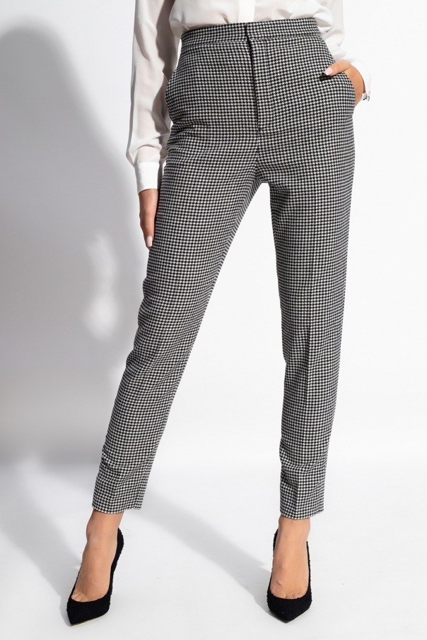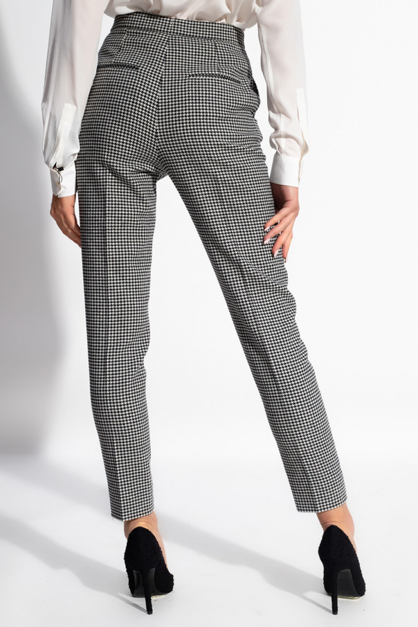 White and black pleat-front trousers from Saint Laurent. Crafted from a wool blend with a houndstooth pattern all-over, this pair falls down with tapered legs and features a zip fly with a button and hook & eye closure and two side seam pockets.