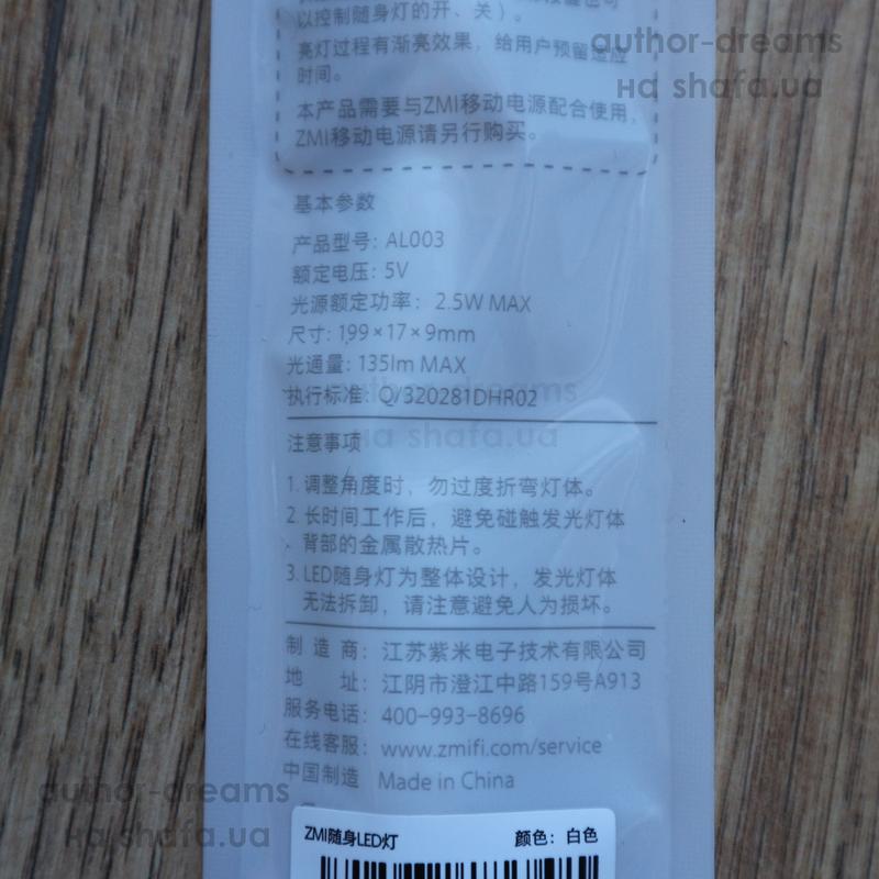 Самовывоза нет, получайте заказ в удобное время на почте.оригинальная светодиодная USB лампа фонарик ночник светильник Xiaomi ZMI Portable LED AL003 White (5 уровней яркости, 10 светодиодов)