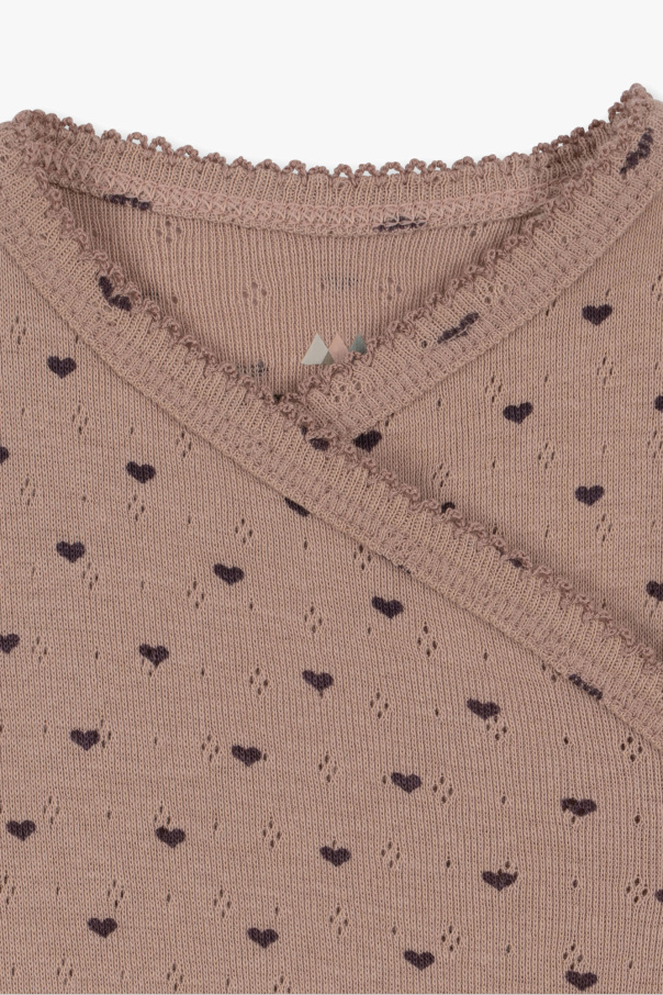 Pink jumpsuit from Konges Slojd. Crafted from organic cotton, this item features a heart motif, snap fastenings on the side and lace trims.