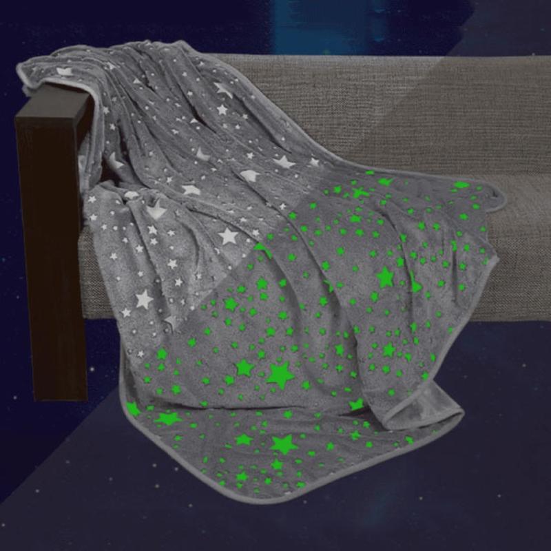 Светящееся в темноте плед, плюшевое покрывало со звездами день/ночь Blanket kids Magic Star 150х100 см теплое флисовое одеяло с принтом. Цвет: серый