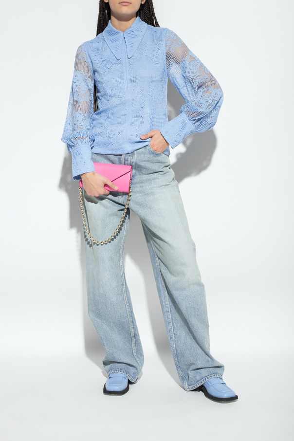 Light blue moccasins from Ganni. Crafted from leather, this model sits on a black rubber sole.