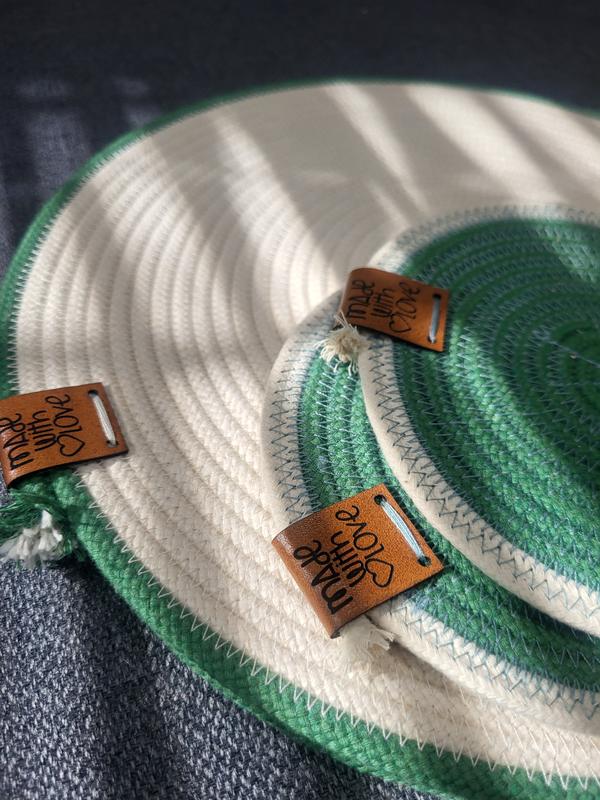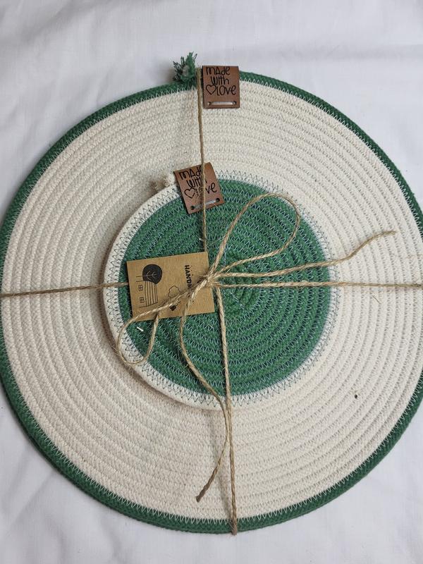 Набір серветок (підставок) виконаний зі 100% бавовняного шнура оздоблені шкіряною біркою. Ручна робота