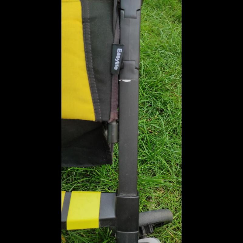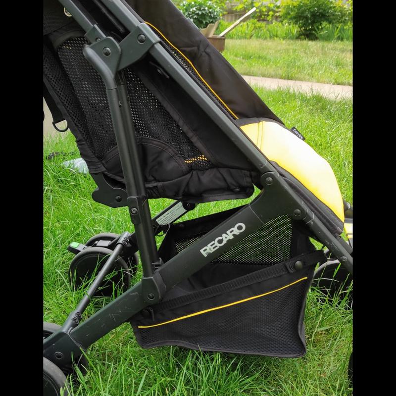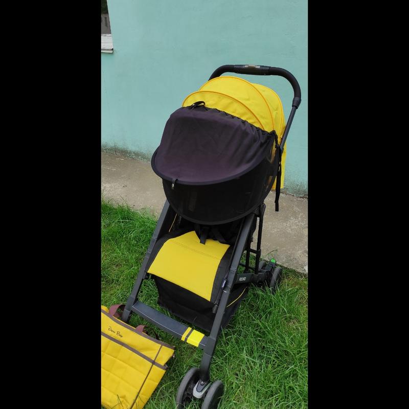 Візочок у хорошому стані, все працює.Спинка опускаєтся.У комплекті додатковий зйомний козирьок, рідний дощовик, сумка органайзер для мами.Є невеликі подряпини і невеликий, непомітний поріз на капюшоні, потертості на дні кошика для речей ( все на фото).