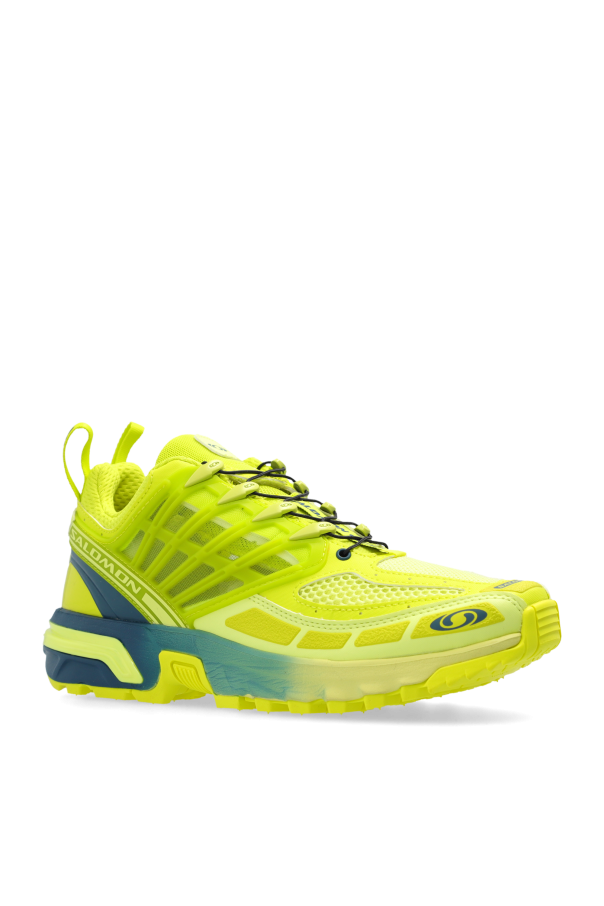 Introducing the \'ACS PRO Desert\' by Salomon, a beacon of innovation in the realm of men\'s sports footwear. These ankle-high sneakers are not just shoes; they are a fusion of performance, style, and unparalleled comfort, meticulously crafted for the modern man. Made from a blend of synthetic materials and fabric, the outer layer of these shoes boasts a vibrant neon yellow color that demands attention, complemented by black Quicklace™ system laces that create a striking contrast. The design is accentuated with numerous cutouts and ventilation spaces, ensuring optimal breathability. Reinforcements on the side panels add structure and support, while the multi-layered rubber sole features enhancements for stability and cushioning. The designer\'s logo prominently placed on the tongue signifies the exclusive nature of this product. Unique in design, the \'ACS PRO Desert\' embodies a futuristic aesthetic that seamlessly blends sporty elements with urban flair. The rear heel loop aids in easy wearability, and the internal insole provides additional comfort and support, making these shoes suitable not only for athletic pursuits but also as a distinctive addition to your daily wardrobe. Why Purchase This Product? Exquisite blend of functionality and style, perfect for the fashion-forward individual. Enhanced breathability and support, thanks to ventilation spaces and reinforced panels. High-quality materials, including synthetic fabric and rubber, ensure durability and comfort. The Quicklace™ system offers convenience and a snug fit, while the designer\'s logo adds a touch of exclusivity. A versatile piece that transcends the boundaries between sportswear and everyday fashion.